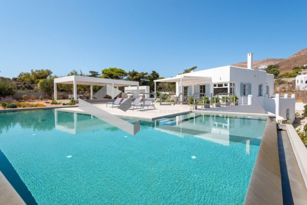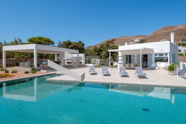 Detached house For sale, floor: Ground floor, in Syros - Poseidonia. The Detached house is 250 sq.m. and it is located on a plot of 1,100 sq.m.. It consists of: 5 bedrooms, 5 bathrooms, 1 wc, 1 kitchens, 1 living rooms. The property was built in 1986. Its heating is Central with Oil, Air conditioning, Boiler are also available, it has Wooden frames with Double glazed windows, the energy certificate is: B+ and its floors are Tiles. The property's status is: Renovated, Very good condition, it has Sea view. The Detached house is Painted, Furnished, With Facade, Bright, Airy, Luxury, Mansion, it is suitable for Investment and it also has the following unique features and advantages: Window Screens, Tents, Storage, Internal staircase, Swimming pool, Garden, Security door, Internet, BBQ, Trees, Porch, Drains. Price: €1,800,000. Plasis Real Estate Glyfada, contact phone: 2109601909, email: