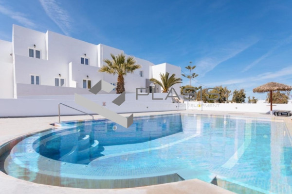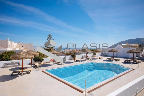 Santorini - Thira, Hotel For sale, floor: Ground floor. The property is 1,740 sq.m. on a plot of 8.000 sq.m.. It is close to Port. It consists of 400 sq.m. ground floor, 400 sq.m. basement. It consists of 3 floors above basement, and it has: 28 spaces, 31 bathrooms, Air conditioning are also available, it has Synthetic frames, energy certificate: B+. The property's status is: Excellent condition, it has Sea view, it is suitable for Investment, For tourist use or invest and it also has the following unique features and advantages: Network infrastructure, Cable TV, Storage, Internal staircase, Swimming pool, Security door, Business furnishing, No shared expenses. Price: €4,500,000. Plasis Real Estate Glyfada, contact phone: 2109601909, email:
