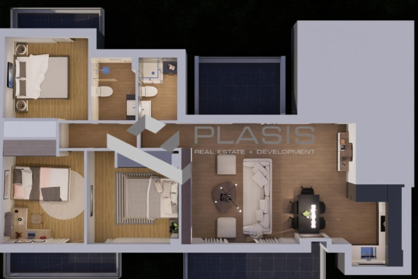 Agios Dimitrios, Monastirio, Floor Apartment For Sale, 90 sq.m., Property Status: under construction, Floor: 3rd, 1 Level(s), 3 Bedrooms 1 Kitchen(s), 2 Bathroom(s), Heating: Personal - Natural Gas, View: Good, Energy Certificate: A+, Elevator, Security door, CCTV, Triple Glazed Windows, Luxury, Penthouse, Airy, Roadside, Bright, Grass, Automatic Watering, Trees, Back yard (Garden), Price: €350,000. Plasis Glyfada, Tel: +30 2109601909 +30 2109601609, email: