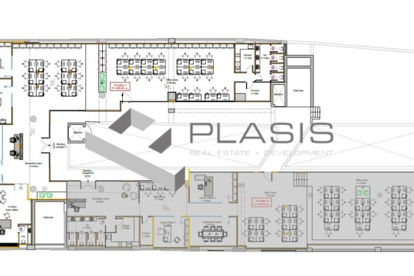 Glyfada, Center Glyfada, Office For Sale, 405 sq.m., Condition: Amazing, Floor: 3rd, 1 Level(s), 4 Bathroom(s), Year of Construction: 1999, Energy Certificate: Pending, Frames: Aluminum, Investment Grade, Bright, Air Conditioning, Includes reception areas, closed and open office areas, conference rooms, kitchen, WC and IT room, In detail, the spaces are as follows: Reception Area, area 35.40sqm, Main office with private wc, area 39.00sqm, Conference Room, area 29.55sqm, Closed Office 1, area 16.34sqm, Closed Office 2, area 16.34sqm, Open office area, total area 189.40sqm, Kitchen, area 7.40sqm, WC area, which includes 4 cabins with a total area of 13.40sqm, IT Room, area 7.60sqm, Laminate flooring has been installed in the offices, except for the kitchen, wc and it-room areas, energy-saving aluminum thermal break frames from the company ELVIAL, air conditioning installation with Daikin VRV system and hidden indoor units floor - ceiling, network cabling is CAT 6 and all LED lighting, pre-installation of alarm system and cameras, Price: €2,126,250. Plasis Glyfada, Tel. Contact: +30 2109601909 +30 2109601609, email: