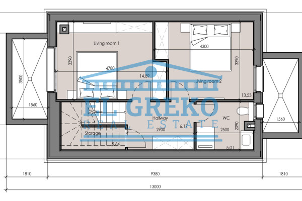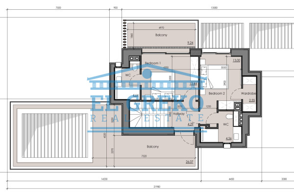 - Upper level - 2 bedrooms (one of which is a master bedroom), 1 additional bathroom and 2 large balconies
