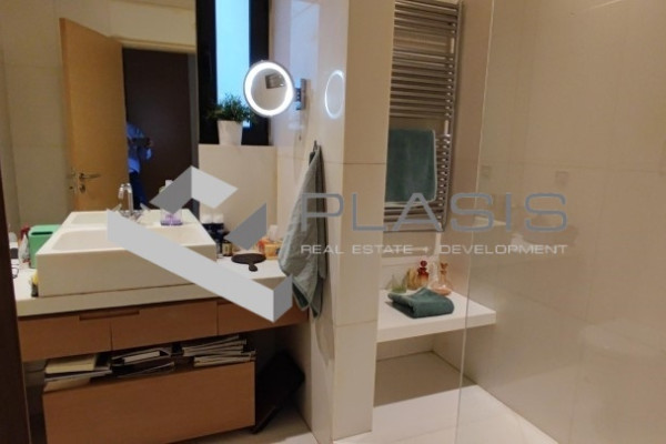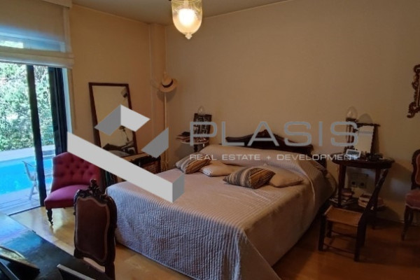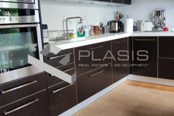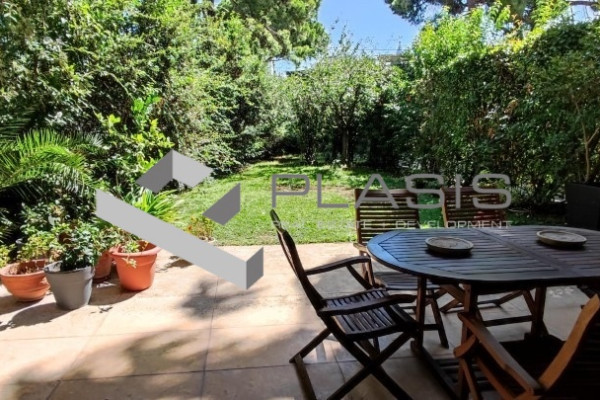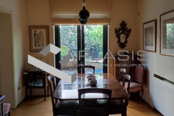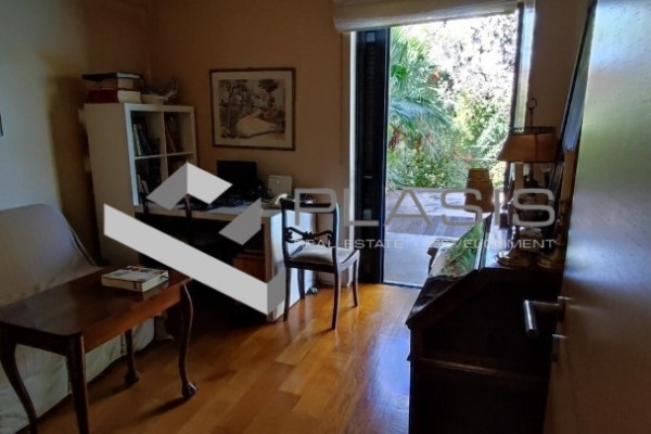 Kifissia, Kifissia Center, apartment for sale, 136 sq.m. 1 location/parking, floors: parquet, bumps: aluminum, security door, warehouse, fireplace, double glazing, luxurious, airy, facade, bright, garden, luxurious ground floor apartment in downtown Kifissia. 2 bathrooms, living room, dining room and kitchen in a 121sqm area, as well as an autonomous hostel with its own bathroom and entrance that can use a third bedroom or office., Surrounded by a 272sqm of exclusive use, with a private pool of 28sqm. It also has a warehouse and location, underground garage, near: Kifissia Center, Price: 750.000 €. Plasis Constitution, Tel. Contact: +30 2103224225, email: