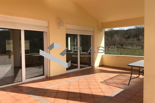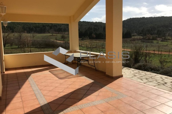Sikyona, house for sale, 181 sq.m., on a plot of 4380 sq.m. Central - Oil, Year of Construction: 1993, Energy Certificate: Under Edition, Couffens: Aluminum, Alarm, Warehouse, Airy, Bright, Boiler, Ground floor consists of a large fireplace, 1 bedroom, 1 bathroom and large warehouse, The 1st floor consists of 3 Master Bedrooms and a small warehouse. The property has 2 large terraces, one of which is covered and can be used as a parking lot. Also built -in BBQ, the garden has firs, cherries, apple trees and walnuts, vegetable garden, rose bushes, and includes a small forest area. Time by car to Kiato 30 minutes, to Athens 1.5 hours to airport 2 hours, Price: 420.000 €. Plasis Constitution, Tel. Contact: +30 2103224225, email:
