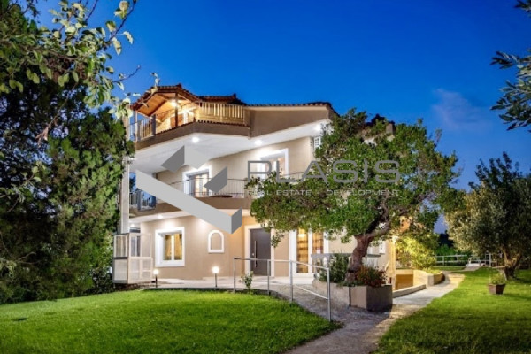 Villa for sale, floor: Ground floor, in the area: Kryoneri. The area of the property is 400 sq.m. and is located on a plot of 3,000 sqm. It consists of: 5 bedrooms, 3 bathrooms, 2 WC, and has 4 parking spaces (4 in the open space). It is built in 1985 and renovated in 2020, and is also available solar, boiler, has double glazed aluminum frames, energy certificate: D and floors are: wood, marble. His condition is: Amazing. The property is angular, bright, airy, luxurious and also features the following features and advantages: screens, awnings, elevator, warehouse, swimming pool, garden, security door, doorway, BBQ, nightlife, pets are allowed. Luxury house with thermal facade and thermal insulation. Residence formed and for people with disabilities with 4 BBQ pool parking, the estate has fruit trees olive trees and vines and has a private drilling. There is also a 60sqm attic. Price: € 750,000. Plasis Real Estate Constitution, Contact Phone: 2103222225, email: