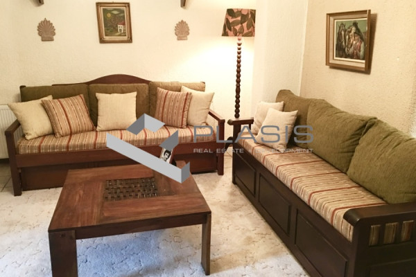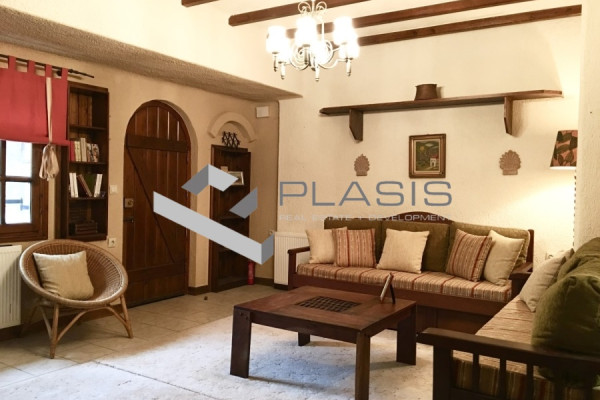 Apartment For rent, floor: Ground floor, in Arachova - Arachova. The Apartment is 82 sq.m. and it is located on a plot of 5.000 sq.m.. It consists of: 2 bedrooms, 1 bathrooms, 1 kitchens, 1 living rooms and it also has 1 parkings (1 Open). The property was built in 1980. Its heating is Autonomous with Liquid gas, Boiler are also available, it has Wooden frames with Double glazed windows, the energy certificate is: D and its floors are Tiles. The property's status is: Renovated, it has Mountain view. The Apartment is Furnished, With Facade, Bright, Airy, Luxury, Traditional house, it is suitable for Investment, Storage, Garden, Grass, Trees. Price: €7,000. Plasis Real Estate Glyfada, contact phone: 2109601909, email: