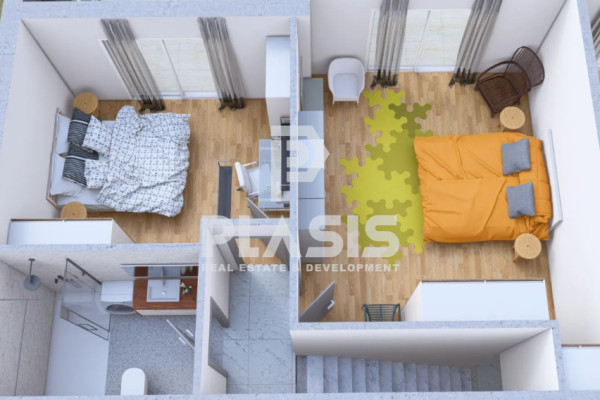 Maisonette For sale, floor: 4th, 5th (2 Levels), in Evosmos - Nea Politia. The Maisonette is 90 sq.m. and it is located on a plot of 812 sq.m.. It consists of: 2 bedrooms, 2 bathrooms, 1 kitchens, 1 living rooms and it also has 2 parkings (2 Open). The property was built in 2024. Its heating is Autonomous with Natural gas, Air conditioning, Solar water system are also available, it has Synthetic frames with Double glazed - Energy Efficient windows, the energy certificate is: A and its floors are Tiles, Laminate. The property's status is: Under construction, it is close to Transportation, Park, Super Market, Local market, it has Sea, Openness, Good, Panoramic view and it has Southeast orientation. The Maisonette is Painted, Penthouse, With Facade, Bright, Airy, Ramp / Wheelchair access, Luxury, it is suitable for Investment, Revenue source and it also has the following unique features and advantages: Window Screens, Tents, Elevator, Storage, Loft, Internal staircase, Security door, CCTV, Pets allowed, Fiber line, Porch, Drains. Price: €205,200. Plasis Real Estate Glyfada, contact phone: 2109601909, email: [email protected], website: https://www.plasisrealestate.com/el/home