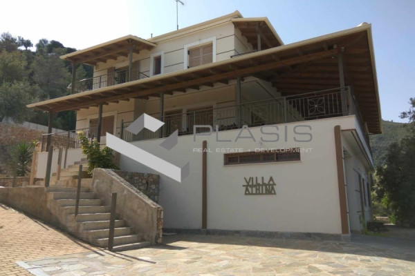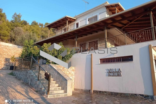 Eurostini, Derveni, Detached House For Sale, 300 sq.m., On a plot of 4050 sq.m., Condition: Amazing, Floor: Ground Floor, 3 Level(s), 5 Bedrooms 1 Kitchen(s), 3 Bathroom(s), 2 WC, Heating: Autonomous - Oil, View: Mountain + Sea, Energy Certificate: Under version, 2 parking space(s), Frames: Aluminum, Elevator, Security Door, Alarm, CCTV, Storeroom, Playroom, Internal Staircase, Double Glazing, Verandas, BBQ, Investment, Luxurious, Airy, Frontage, Bright, Air Conditioning, Excellent detached house on a plot 4050sqm+1650sqm (tangent) OLIVE TREE (approx. 100 roots) garden, paddocks, stone-built outdoor layout. Cellar and 29 sq m BBQ, 1st level (approx. 200 sq.m): closed parking for 2 spaces, storerooms, 1 bedroom, 1 bathroom with shower, kitchen, living room - playroom, fireplace, 2nd level (100 sq.m.) 1 bedroom, 1 WC with shower, fully equipped kitchen, dining room, fireplace, huge balcony with wooden canopy, 3rd level 1 master bedroom with its own bathroom and jacuzzi, 2 bedrooms, 1 bathroom with bathtub, 1 closed patio, Internal staircase, internal elevator, aluminum frames with screens and double glazing, wardrobes with mechanisms, intercom, autonomous heating with radiators, security doors, video surveillance, alarm with cameras, solar triple, 4AC, 2 water tanks, possibility of swimming pool, external generator in addition, and unlimited mountain and sea views. Suitable for own residence, holiday home as well as tourist exploitation, 150 km from Athens, 5-6 minutes by car to the nearest beach, Near: Thalassa-market, Price: €1,500,000. Plasis Glyfada, Tel. Contact: +30 2109601909 +30 2109601609, email: