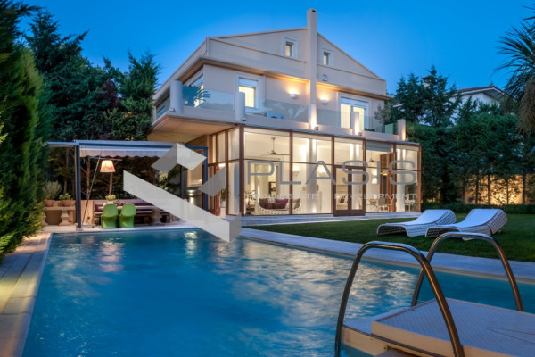Maisonette For sale, floor: Ground floor, 1st, 2nd (3 Levels), in Ekali. The Maisonette is 516 sq.m. and it is located on a plot of 484 sq.m.. It consists of: 5 bedrooms (3 Master), 5 bathrooms, 2 wc, 2 kitchens, 2 living rooms and it also has 1 parkings (1 Closed). The property was built in 1996. Its heating is Autonomous with Oil, Underfloor heating, Air conditioning, Solar water system, Thermal insulation are also available, it has Aluminum frames with Double glazed - Energy Efficient windows, the energy certificate is: A and its floors are Wooden, Marble. The property's status is: Excellent condition, it is close to Park, Square, Church, Super Market, 5 Km from city, it has Nature view and it has NorthEast orientation. The Maisonette is Painted, With Facade, Bright, Airy, Detached, Luxury and it also has the following unique features and advantages: Window Screens, Tents, Elevator, Electric Appliances, Energy fireplace, Storage, Loft, Internal staircase, Swimming pool, Garden, Security door, CCTV, Security alarm, Security cameras, Fire extinguishing system, Internal elevator, Internet, Playroom, No shared expenses, BBQ, Satellite Receiver, Safe Box, Night stream, Three phase current, Automatic watering, Grass, Trees, Pets allowed, Quiet neighborhood, Porch, Electric shutters, Service/Maid's room, Drains. Price: €1,500,000. Plasis Real Estate Syntagma, contact phone: 2103224225, email: