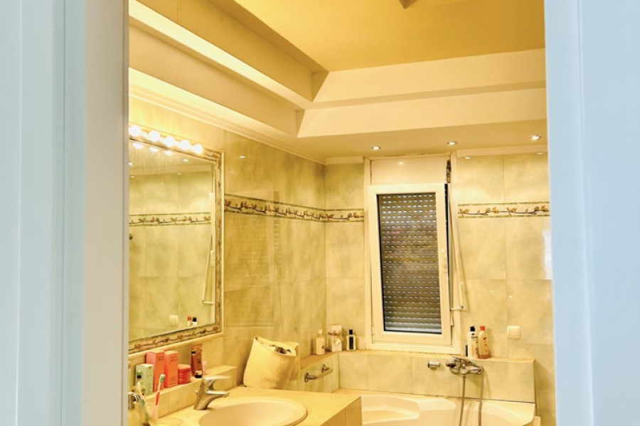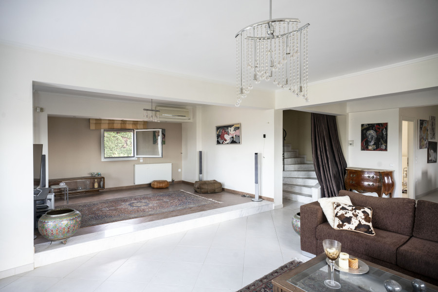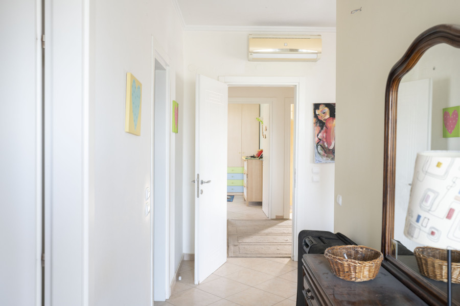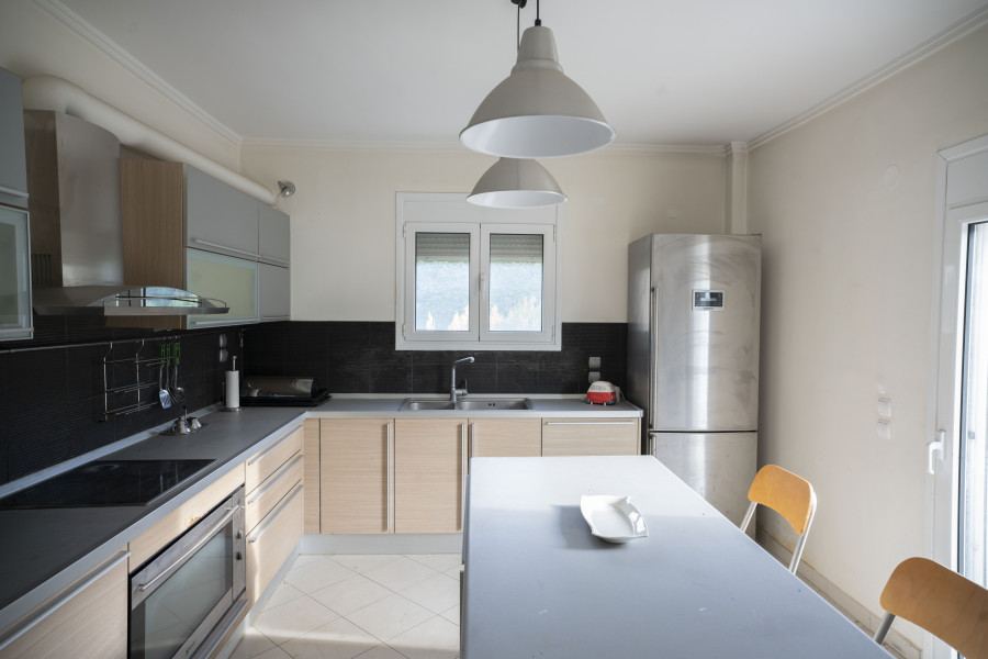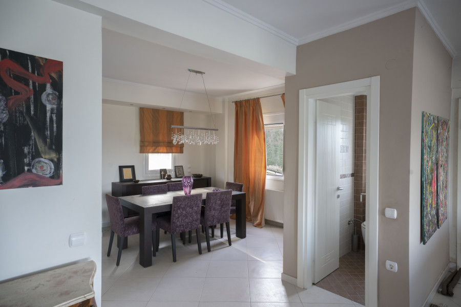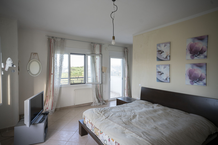 In Neo Risio,Municipalityof Thermi, just 10' from Macedonia airport, is located this luxurious residence on a plot of about 4000sq.meters,garden and view of the bay of Thermaikos and the mountain of Chortiatis. Its construction was completed in 2005. It extends to the following levels: Ground floor with direct access to the wonderful garden, space that can be independent and become a separate apartment consisting of a large living room, kitchen and a large room with en-suite bathroom and a WC. On the first floor we find the main kitchen of the house overlooking the back garden, a dining room for the family and an imposing living room with two areas, a living room with fireplace and a square area that can become a dining room for family gatherings. The area is bathed in light and has balconies that highlight the view of the mountain and the sea. On the second floor there are three spacious rooms. A master with its own bathroom and wardrobe room as well as a bathroom for the two children's rooms, all with balcony and openings that makes them particularly sunny. Finally, the attic is an open plan area with its own bathroom that can become an office, playroom or space for the staff. All floors are connected by a three-seater elevator by Kleemann. In the garden there is an enclosed parking for two cars as well as the a storage room with the heating installation. Distance from the Interbalkan Medical Center 14'. Distance from Mediterranean Cosmos Shopping Center 9' Neo Risio is a lively village full of young families with supermarkets, shops, cafes, restaurants, services, doctors and easy access to the city and the nearby beaches of Halkidiki and Perea