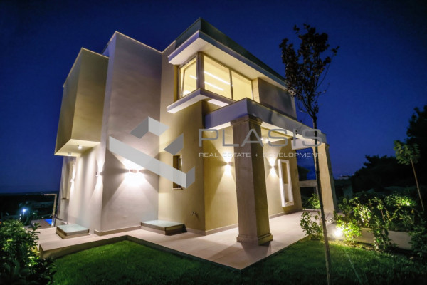 Villa For sale, floor: Basement, Ground floor, 1st (3 Levels), in Pallini - Pefkochori. The Villa is 175 sq.m. and it is located on a plot of 618 sq.m.. It consists of: 4 bedrooms, 2 bathrooms, 1 wc, 1 kitchens, 1 living rooms and it also has 2 parkings (2 Open). The property was built in 2024. Its heating is Personal with Electricity, Air conditioning, Solar water system, Boiler are also available, it has Aluminum frames with Double glazed windows, the energy certificate is: A+ and its floors are Tiles. The property's status is: New development, Excellent condition, it is close to Sea, Seaside, Super Market, Entertainment centers, Local market, 350 Meters from seaside, it has Sea, Nature, Openness, Good view and it has East orientation. The Villa is With Facade, Bright, Airy, Detached, Seaside, Luxury, it is suitable for Holiday home, Investment and it also has the following unique features and advantages: Window Screens, Electric Appliances, Storage, Internal staircase, Swimming pool, Garden, Security door, Security alarm, BBQ, Satellite Receiver, Grass, Trees, Pets allowed, Quiet neighborhood, Porch, Internal yard, Car charger, Drains. Price: €800,000. Plasis Real Estate Glyfada, contact phone: 2109601909, email: