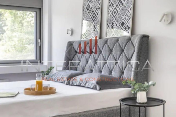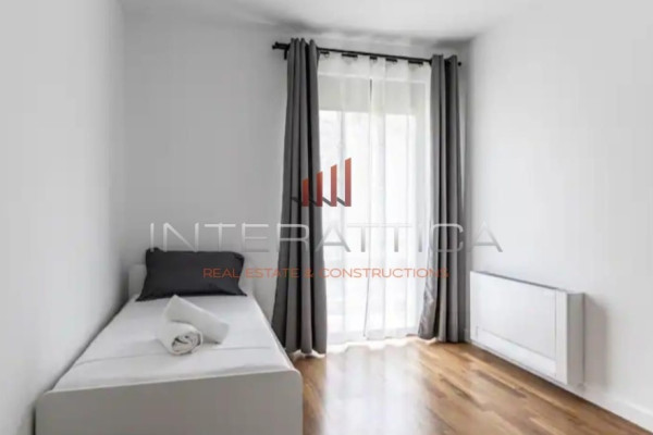 It was designed in a minimal line and follows all modern housing standards. On the ground floor we find a large and bright living room with an energy fireplace, a dining area, an open plan fully equipped kitchen, which includes several storage cupboards, an island with an oven, as well as a counter with a stool as a daily dining area, while there is also a guest toilet.