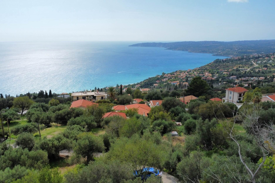 The plot has amazing sea views and facing south (overlooking Zakynthos island) and it is just 7 minute drive from famous Lourdas beach, 8 minute drive from Trapezaki and 15 minutes from famous Koroni. The distance to the airport is 15km while distance to Argostoli is 20km.