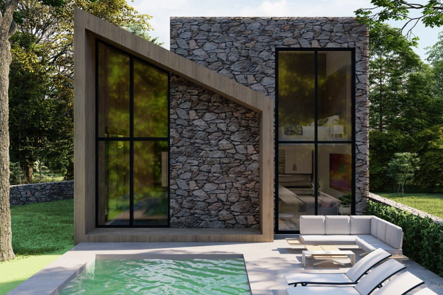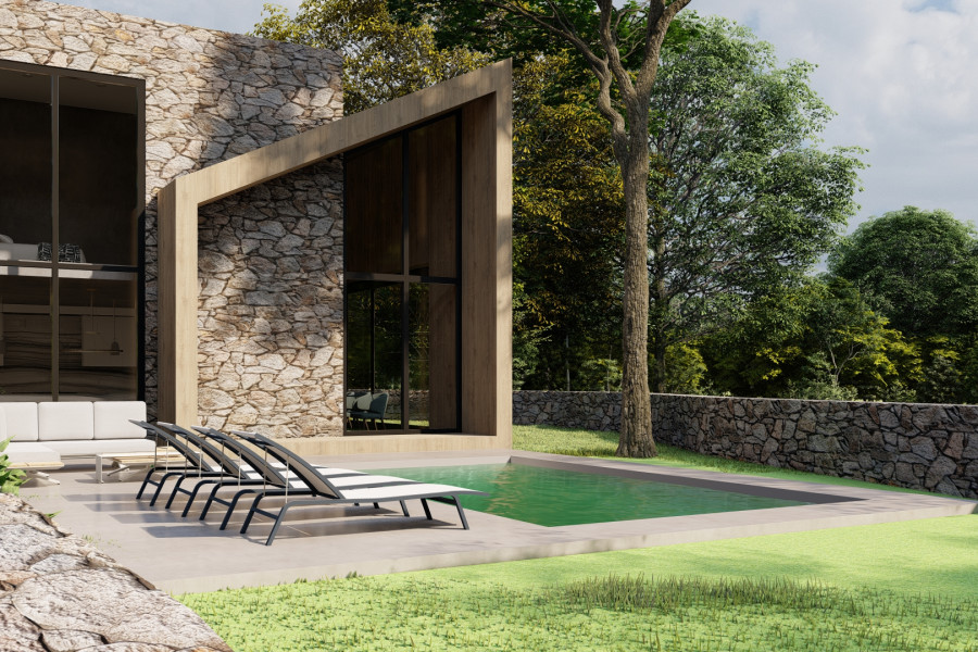 In brief, it is a 120m2 house, 3 bedrooms, 3 bathrooms, storage room, 1 guest toilet, kitchen with cabinets, living room, 200m2 outdoor tiled area, 30m2 open air parking place, ground level lounge area with pergola, pathway to the house & 35m2 modern design pool. The house is designed as energy efficient with a special thermal cell. It will have air condition in every room and a modern designed living room. Exterior pictures are 3D model of the actual property & Interior pictures are from the sample house! Delivery is scheduled for end 2024 - early 2025! The property can be a home away from home and it is a first-class investment opportunity. A unique property opportunity!