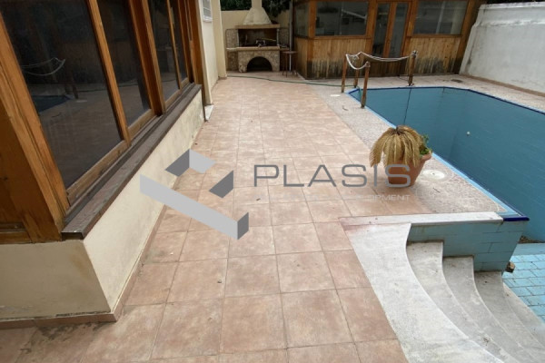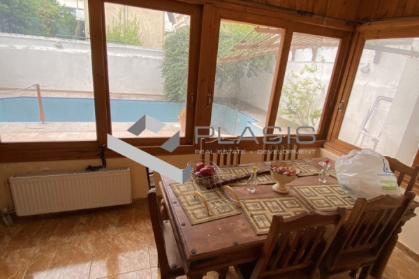 Glyfada, Terpsithea, Apartment For Sale, 153 sq.m., Condition: Good, Floor: Ground Floor, 1 Level/s, 3 Bedrooms 1 Kitchen/s, 1 Bathroom/s, 1 WC, Heating: Autonomous - Oil, View: Cityscape, Construction Year: 1980, Energy Certificate: C, Floors: Tiles, Frames: Wooden, Elevator, Security Door, Fireplace, BBQ, Façade, Interior, Bright, Air Conditioning, Solar, Trees, Pool, Garden, has living room, kitchen with pool view, alarm system. It was renovated in 2010, Price: €395,000. Plasis Glyfada, Tel. Contact: +30 2109601909 +30 2109601609, email: