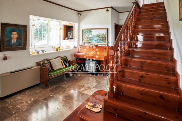 In detail, the ground floor consists of the entrance hall, a large lounge with a fireplace and a dining room, an independent kitchen with a 2nd dining room, 1 WC for visitors, and 1 bedroom with his own WC.