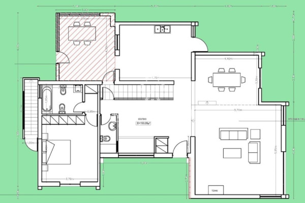 In the basement of 102sqm there are two spaces, 1 WC, the boiler room, internal and outer staircase.