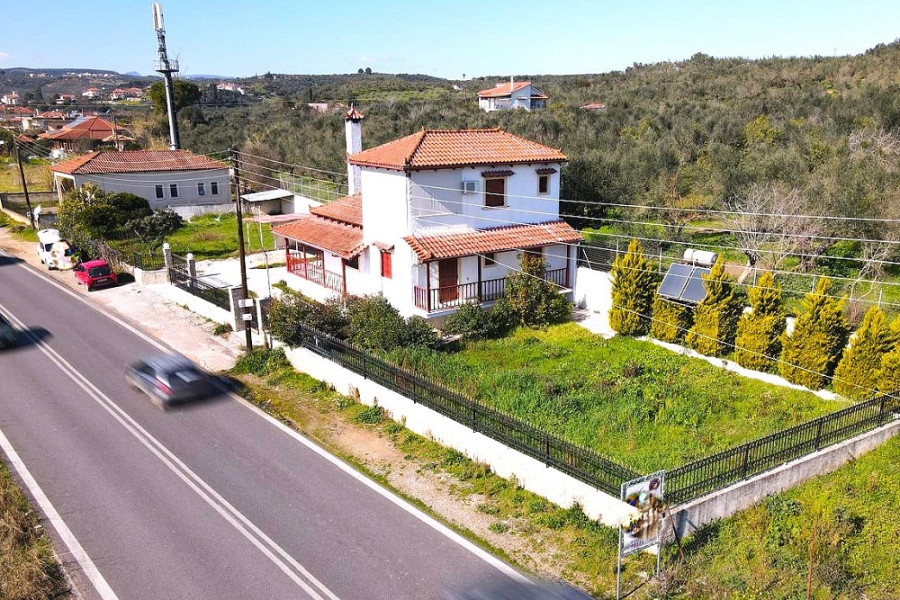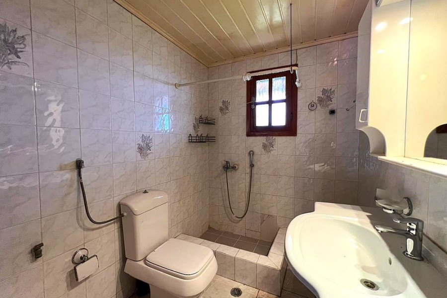 A wooden staircase leads upstairs to the master bedroom, bathroom with a bathtub and a kitchenette.A beautifully large fenced garden of 930 m² houses the parking space, barbecue and lawn area.This property is suitable for a permanent residence or a second home, the nearest golf course is 20 km away and the popular town of Pylos 24 km.