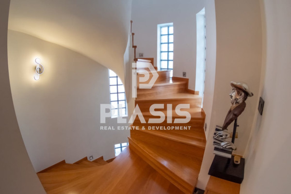 Maisonette For sale, floor: Basement, Semi-basement, Ground floor, Elevated Ground Floor, 1st, 2nd (6 Levels), in Glyfada - Glyfada - center. The Maisonette is 383 sq.m. and it is located on a plot of 1,050 sq.m.. It consists of: 4 bedrooms (1 Master), 4 bathrooms, 1 wc, 2 kitchens, 2 living rooms and it also has 3 parkings (3 Open). The property was built in 2007. Its heating is Autonomous with Oil, Underfloor heating, Heating per level, Air conditioning, Solar water system, Radiator are also available, it has Aluminum frames with Double glazed windows, the energy certificate is: B and its floors are Tiles, Wooden, Marble. The property's status is: Excellent condition, it is close to Transportation, Park, Sea, School, Kindergarten, Local market, 1.5 Km from seaside, 10 Km from city, 18 Km from airport, it has Park, Sea, Unobstructed view. The Maisonette is Painted, With Facade, Bright, Airy, Detached, Luxury, it is suitable for Investment, Revenue source, Co-housing and it also has the following unique features and advantages: Window Screens, Tents, Elevator, Electric Appliances, Storage, Loft, Internal staircase, Swimming pool, Garden, Security door, CCTV, Security alarm, Security cameras, Fire extinguishers, Internal elevator, Internet, Playroom, Satellite Receiver, Night stream, Three phase current, Automatic watering, Grass, Trees, Pets allowed, Quiet neighborhood, Porch, Smart home, Drains. Price: €2,170,000. Plasis Real Estate Glyfada, contact phone: 2109601909, email: