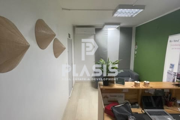 Pagrati, office for rent, floor: 1st, total area of ​​75 sqm. The property is near Metro, Transport, Park, School, Square, Church, Super Market, City Center, residential, has: 3 spaces, 1 bathroom/a, 1 kitchen/s. Its heating is autonomous with electricity, while air conditioning, sound insulation is also available, has double glazing synthetic frames, energy certificate: D and floors are: laminate. Its condition is: Very good, park view, urban landscape and is southeast. The property is an apartment, painted, furnished, facade, bright, suitable for corporate offices, professional and also features the following features and advantages: elevator, current, security door, doorbell, fire extinguishers, with equipment. Price: € 650. Plasis Real Estate Glyfada, Contact Phone: 2109601909, email: [email protected]