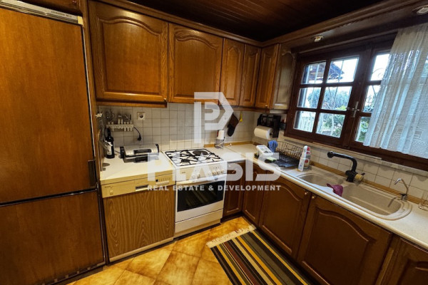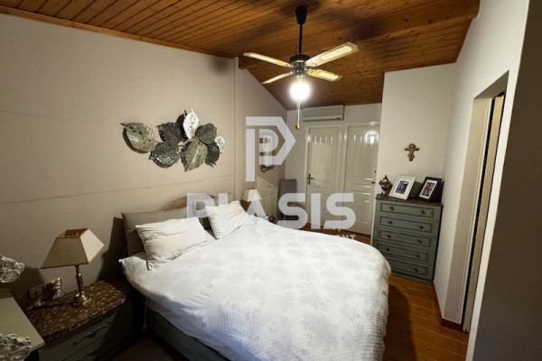 Detached house For sale, floor: Ground floor, 1st (2 Levels), in Nea Makri - Center. The Detached house is 110 sq.m. and it is located on a plot of 200 sq.m.. It consists of: 3 bedrooms (1 Master), 2 bathrooms, 1 kitchens, 1 living rooms and it also has 2 parkings (2 Open). The property was built in 2000. Its heating is Personal with Liquid gas, Air conditioning, Solar water system, Boiler, Sound insulation, Thermal insulation, Radiator are also available, it has Wooden frames with Double glazed windows, the energy certificate is: C and its floors are Tiles, Wooden. The property's status is: Excellent condition, it is close to Transportation, Park, Sea, Seaside, School, Square, Church, Kindergarten, Public market, Super Market, City Center, Cafe/Restaurants, Local market, 20 Km from airport, 1 Km from seaside, 500 Meters from market, it has Mountain, Nature view and it has South orientation. The Detached house is With Facade, Bright, Ramp / Wheelchair access, Lower level house and it also has the following unique features and advantages: Window Screens, Storage, Attic, Internal staircase, Garden, Security alarm, Fire extinguishing system, No shared expenses, BBQ, Night stream, Three phase current, Automatic watering, Trees, Pets allowed, Quiet neighborhood, Porch, Septic tank. Price: €240,000. Plasis Real Estate Glyfada, contact phone: 2109601909, email: