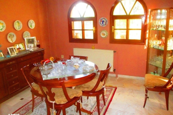 For sale excellent 275 sqm house, in a corner estate of 4780 sqm, graded on three levels, with five bedrooms (all have wardrobes), a dining room with a middle floor fireplace, independent kitchen, two w/c, two bathrooms, two bathrooms. It has wooden frames with screens, oil burner and wood boiler connected to bodies and water heater, as well as a placed alarm. With rich openness and views in every direction, it is in Souroti Thermi.