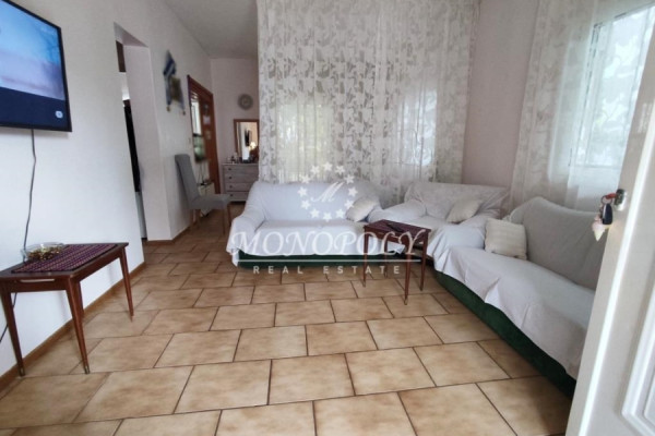 Nea Makri - Xylokeriza, Semi-detached house Detached house 102 sq m., built in 1981, in good condition, bright, airy on a plot of 361.80 sq m. and additional building area of ??66.54 sq m. It consists of an elevated ground floor of 62 sq m. with living room, separate kitchen, 1 bedroom, 1 bathroom, large verandas overlooking the front garden and 40 sq m. semi-basement, which from the garden side is almost ground floor, bright, with living room, with open kitchen, 1 bathroom, overlooking the back garden. It has autonomous heating with oil, double glazing, aluminum frames, garden with lawn, 2 parking spaces. It is leased until September 2025. It is located 1,000 meters from the beach of Nea Makri.