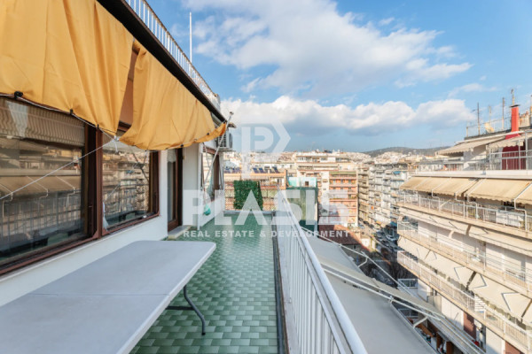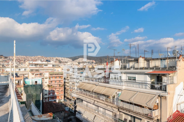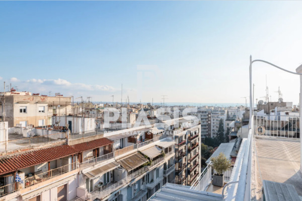 Apartment For sale, floor: 8th, in Center of Thessaloniki - Historical Center. The Apartment is 95 sq.m.. It consists of: 2 bedrooms, 1 bathrooms, 1 kitchens, 1 living rooms. Its heating is Autonomous, Air conditioning, Solar water system are also available, the energy certificate is: F and its floors are Tiles, Wooden, Mosaic. The property's status is: Renovated, Excellent condition, it is close to Metro, Transportation, Square, Cafe/Restaurants, Local market, it has Sea, Openness, Good, City views view and it has EastWest orientation. The Apartment is Penthouse, With Facade, Bright, Airy, Luxury and it also has the following unique features and advantages: Elevator, Storage, Security door, Porch, Drains. Price: €370,000. Plasis Real Estate Glyfada, contact phone: 2109601909, email: