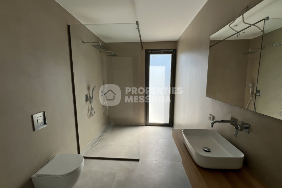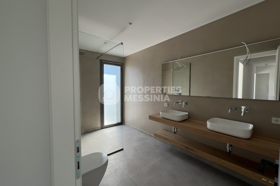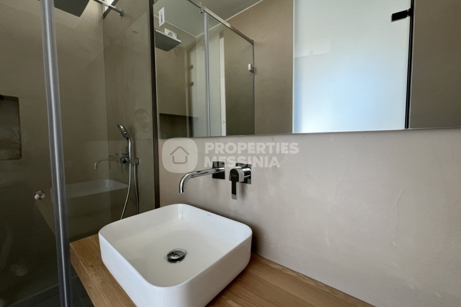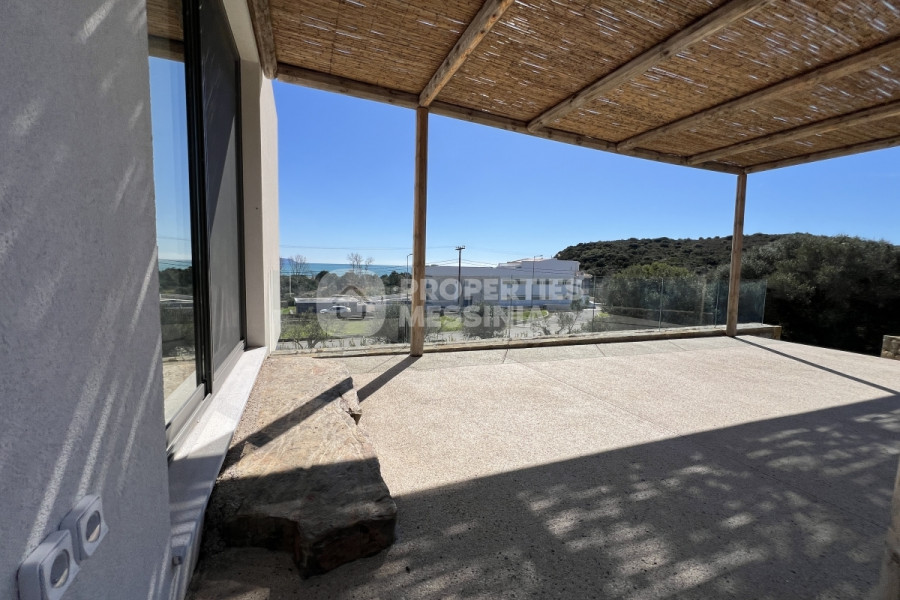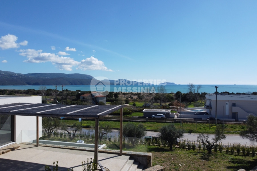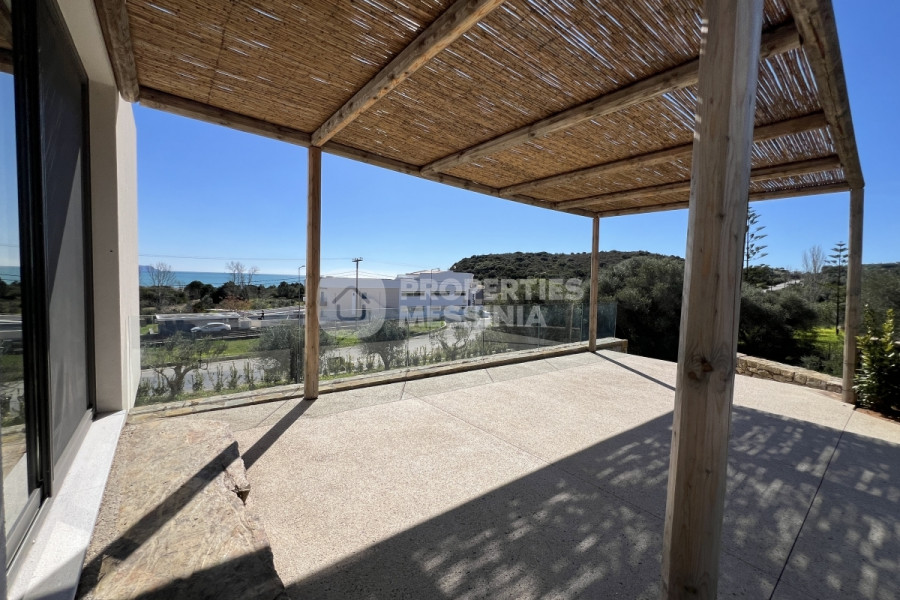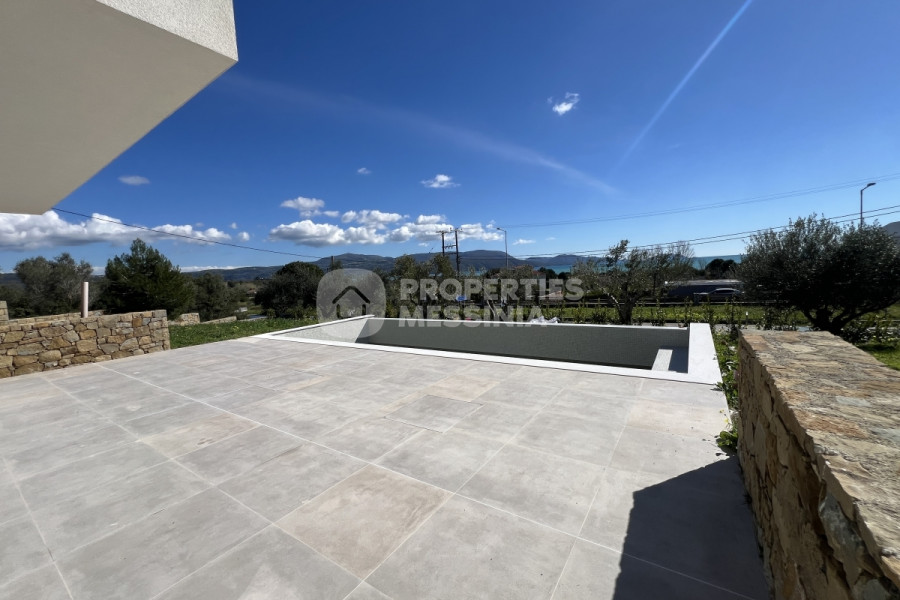 Property Code: 1-113 - Villa FOR SALE in Methoni Foinikountas for € 495.000 . This 114.00 sq. m. furnished Villa consists of 2 levels and features 3 Bedrooms, an open-plan kitchen/living room, 2 bathrooms and a WC. The property also boasts Heating system: Individual - Electric, tiled floor, view of the Sea, Window frames: Aluminium, Armourplated door, a storage unit 14 sq.m. sqm, garden, swimming pool, A/C, heating per level, electrical appliances, insect screens, double-glazed windows, solar-powered water heater, boiler, open space, internal staircase, balconies: 74 sqm. The building was constructed in 2022 Plot area: 1018 s.q. . Building Energy Rating: A Distance from sea 250 meters, Distance from nearest village: 2200 meters, Sale of a newly built, two-storey villa with panoramic sea views in the area of Finikounda. The 2-level villa has a total area of 114 sq.m. and is located on a plot of 1018 sq.m. just 250 m. from the sea. This house stands out for its modern design and high aesthetics in every choice. The upper floor consists of an open-plan living room and kitchen and 1 master bedroom with a private bathroom as well as a shared WC. The floor has access to the very comfortable terrace of the house which provides an incredible view of the sea. The internal staircase connects the upper and lower floors, where one will find 2 bedrooms, a bathroom with integrated sanitary ware as well as double sinks and showers, an element that provides a special experience and comfort. The special elements of the property are the large windows that make the interior extremely bright and offer views from every point of the house. On the lower floor of the villa there is access to the outdoor patio area as well as to the 32 sq.m. swimming pool that adorns the property. Certainly a special case of property that combines incredible views, comfort and aesthetics. *The information of the properties we present is that provided to us by the owners. Our company is not responsible for any incorrect information
