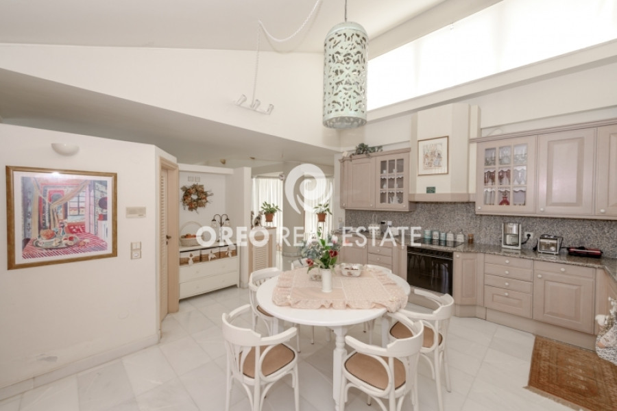 Location: Strategicallylocated, this property is built 3 km west of the centre of Rethymnon city, offering a panoramic scenic view of the old fortress, the harbour and the old town. Its charismatic location provides easy access both to the town centre and to Crete’s northern motorway axis. The property is built within the residential suburb of Violi Charaki Atsipopoulo and approximately 200 m from the motorway junction connecting Chania and Heraklion with their respective airports. Violi Charaki is only a 5-10 min drive away from Rethymnon town centre. Neighbourhood: The property is surrounded by other newly built, private residencies and within 50-100 m one can have access to local amenities including a supermarket, a bakery-coffee shop, a butcher’s, a dry cleaner’s and a gym while several outlets including a large LIDL supermarket are also located within walking distance. The famous family Greek taverna of “Kompos” is around the corner and the traditional cultural village of Atsipopoulo is only 5-10 mins away. Property features: The plot land is of 1,211.47 sqm and features a detached, fenced, luxurious ground floor residence arranged in levels with a gated entrance and a private driveway. Τhe building was constructed with the principles of bioclimatic architecture and consists of two independent apartments which have separate entrances but internal connection is possible, if desired. Its open plan layouts allow the diffusion of plenty of natural daylight and ventilation in accordance with the Cretan climatic conditions, creating a cozy sense of living. The energy efficiency rating of the property has been also upgraded throughout the years, respecting its architectural design.The first residence is of 268.89 sqm and has 4 bedrooms, 3 bathrooms and an attic. The upper ground level consists of three bedrooms and two large bathrooms. Specifically, one large master double-bedroom with an en-suite bathroom, fit-in and walk-in wardrobes, and a separate small balcony overlooking the patio offering a sea view. There are also two more double bedrooms with fit-in wardrobes and a double sink, large bathroom with a comfortable bathtub. All rooms overlook a secluded terrace leading to a backyard with a 50 sqm swimming pool. Between the upper ground floor level and the second level, there is another room with fit-in wardrobes which can be used as an extra guest room and/or study. A guest WC is also available. The main ground floor comprises of an open plan arrangement of a fully equipped kitchen, a dining room, and a large separate living room with an impressive veranda offering a panoramic view of the Rethymnon city and the Aegean Sea. An internal spiral staircase connects the dining room with an open plan attic which can be utilized as a study or an extra guest room. There is also access to the marbled patio. The second fully equipped apartment of 116.76 sqm consists of an open plan space for living room and kitchen, two bedrooms with fit-in wardrobes and a bathroom. There is also a separate storage/utility room. The front outdoor space has an extended landscaped garden with a cobbled yard. The property is built at high specification with quality materials such as granite, Vermion white marble, iroko and ash wooden floors, while its indoor decoration offers a unique mix of classic, vintage, and modern styles. The property includes an enclosed parking space for 2 vehicles, storage and boiler rooms. The surrounding free area is of 911.07 sqm and is well protected by a combination of stone wall, cement and metal mesh fences. The gardens have been landscaped and planted with local species and a network of watering irrigation has been installed. There is also an in-built water tank available to supply in case of emergency. The property is connected to the municipal water supply and sewerage systems.