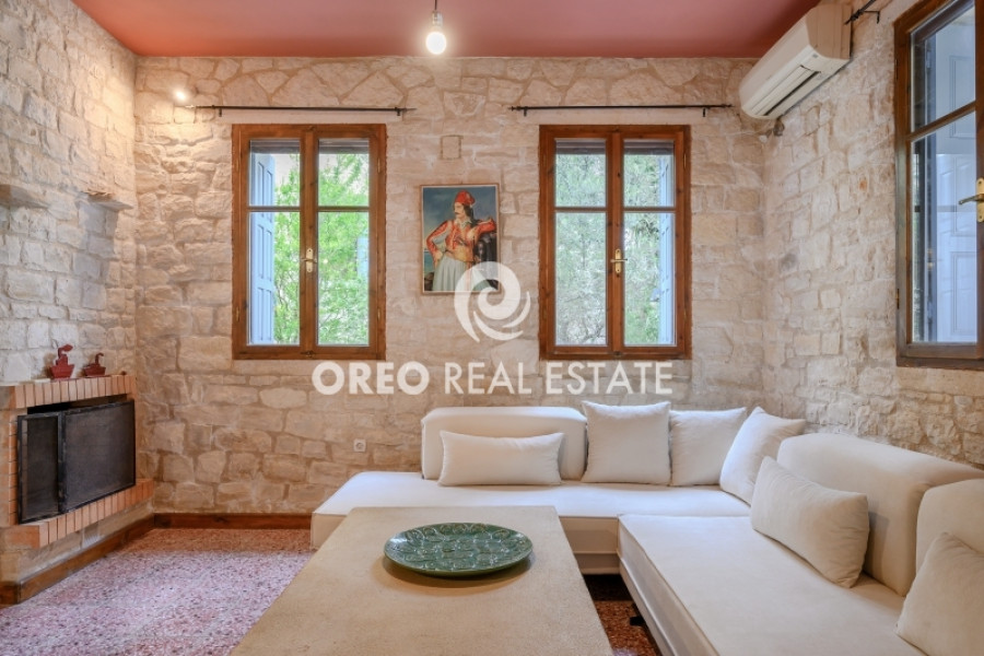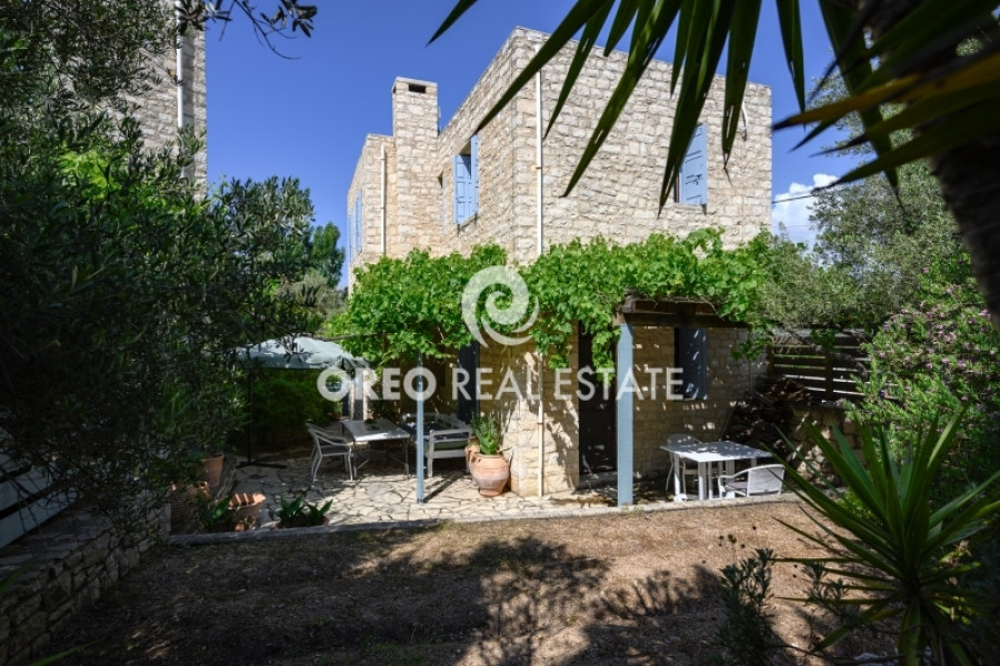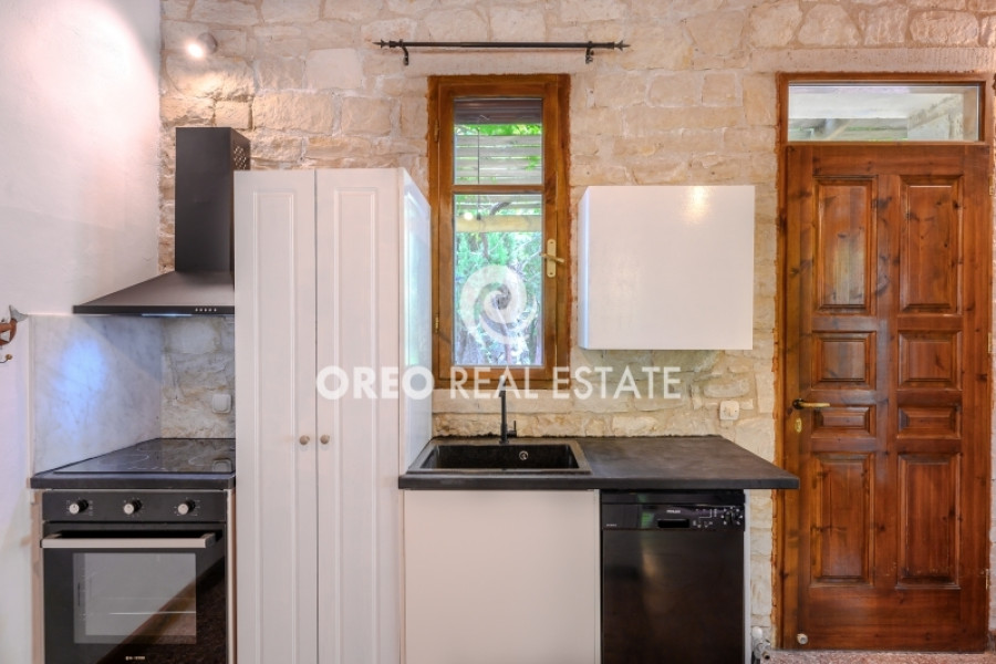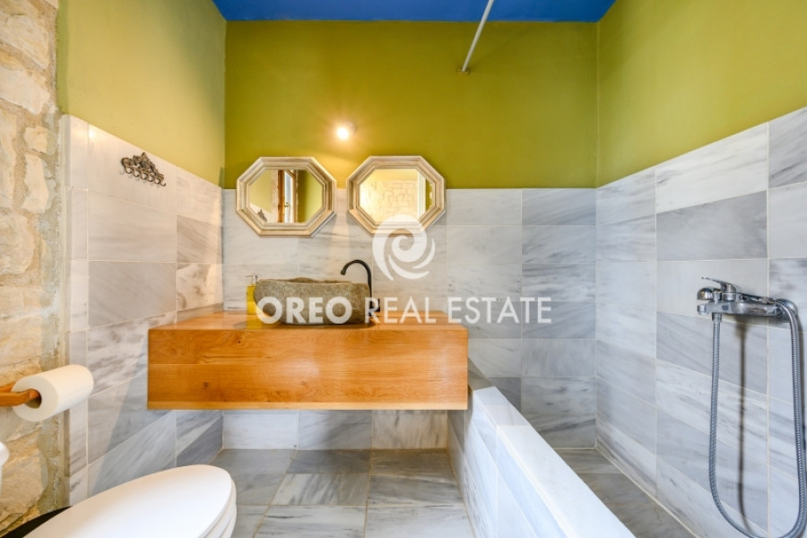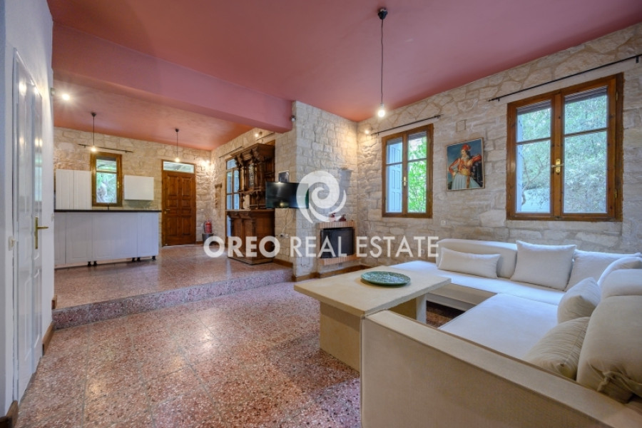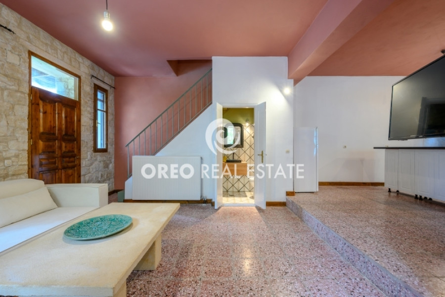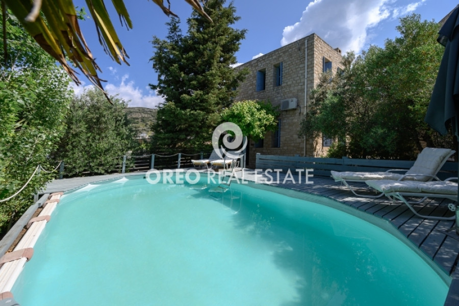 Property code: 2-103 - Lampini-Rethymno: FOR SALE renovated and furnished two-level villa of 100 sq.m. on a plot of 350 sq.m., built in 2017. It was renovated in 2024 and consists of 2 bedrooms, living room, kitchen, 2 bathrooms and 1 WC. It has a private swimming pool, private garden with trees and parking. It is fully equipped and furnished. It has autonomous heating, fireplace, wooden frames, wooden and tiled floors, A/C, electrical appliances, double glazing, solar water heater, boiler and storage room. It is fenced, with a private swimming pool, private garden with trees and a panoramic view of the Lampini area. The distance from the village center is approximately 300 meters, while it is approximately 24km from Rethymno and approximately 86km from Chania Airport - Price: 450,000 €