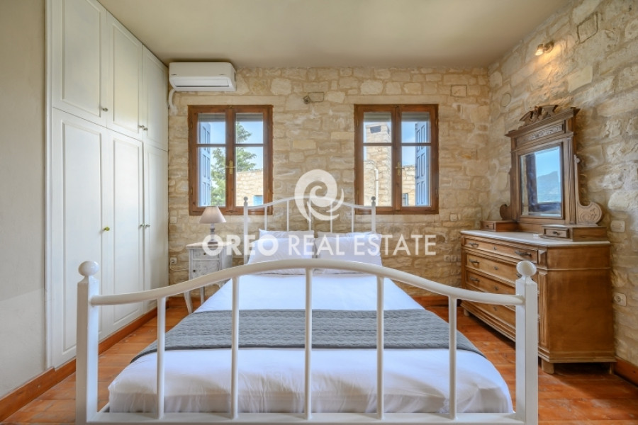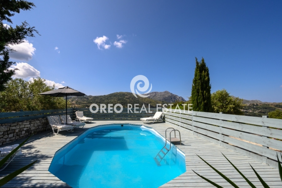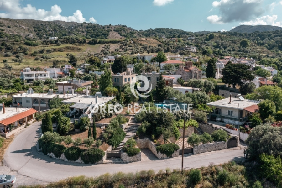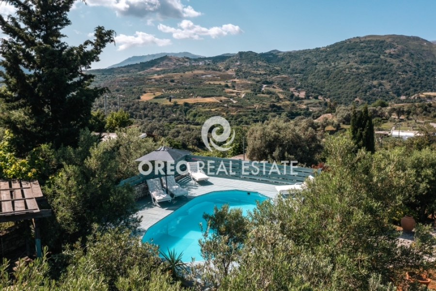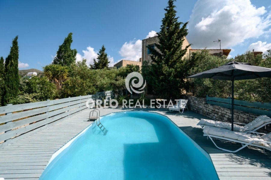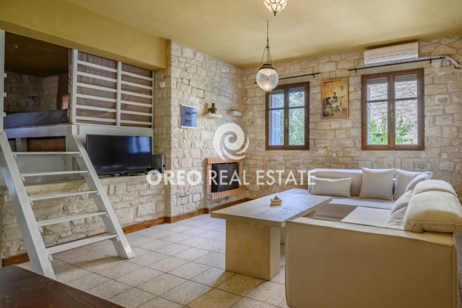Property code: 2-104: Lampini-Rethymno: FOR SALE renovated and furnished two-level villa, with a total area of 100 sq.m. on a plot of 350 sq.m., built in 2017. It was enovated in 2024 and consists of 2 bedrooms, living room, kitchen, 2 bathrooms and 1 WC. It is fully equipped and furnished, it has autonomous heating, fireplace, wooden frames, wooden and tiled floors, A/C, electrical appliances, double glazing, solar water heater, boiler and storage room. It is fenced, it has a private swimming pool, private garden with trees and a panoramic view of the Lampini area. The distance from the village center is approximately 300 m, while it is approximately 24km from Rethymno and approximately 86km from Chania Airport - Price: 450,000 €
