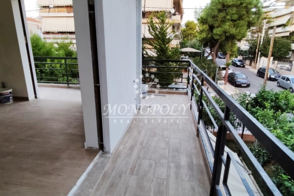 Glyfada - Ano, between Gounari & Gennimata, apartment 80sq.m., 1st floor, facing the road, bright, recently fully renovated, in excellent condition. It is in a building constructed in 1985, and the apartment has not been inhabited since its renovation. It consists of a living room with an open plan kitchen, 2 bedrooms, 1 bathroom, 1 WC, and 1 internal storage room. The kitchen, bathroom, WC, and closets are brand new. It has a thermal facade, individual heating with heat pump, energy-efficient double glazed windows with thermal breaks, screens, boiler. It has a security door, elevator, and balconies with awnings. It is located in a quiet neighbourhood, near public transport stops and the local market.