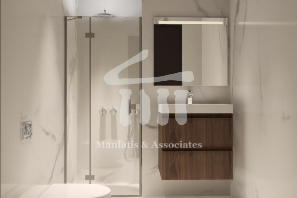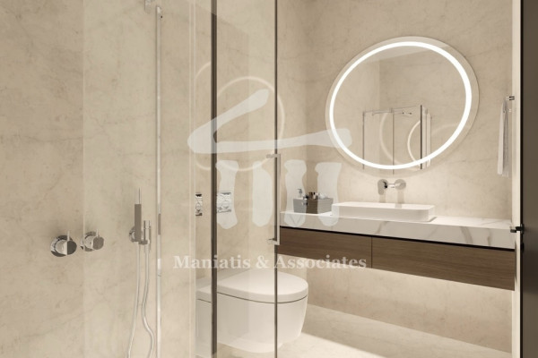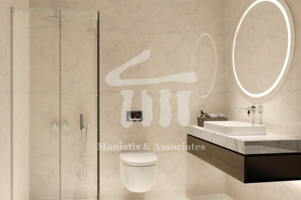 For sale. Nea Smyrni: 102 sq.m. apartment, 6th floor. It consists of living room, kitchen, 2 bedrooms and 2 bathrooms. It has an elevator, security door, video door entry, energy-efficient aluminum frames and screens, thermal facades, autonomous natural gas heating, pre-installation for solar, air conditioners and alarm, tiled floors, three-phase electricity, parking and storage. It is airy, front-facing and very bright, with large balconies, ultra-modern and modern aesthetics, in an excellent location. PRICE: €540,000 Maniatis & Associates, 2104190703, www.e-mesitis.com
