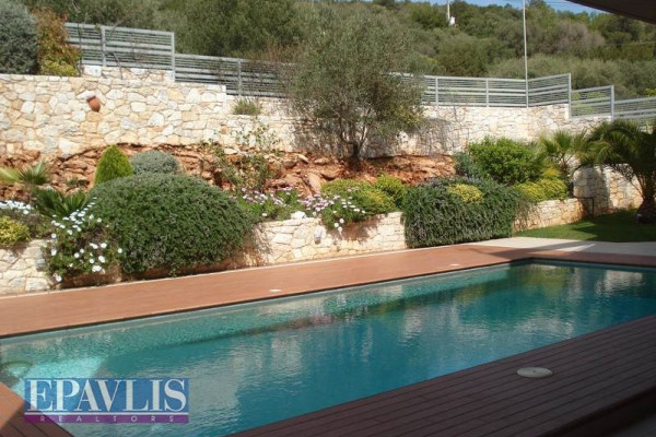 Marathonas, Sxoinias, Detached house For Sale, 630 sq.m., In Plot 1084 sq.m., Property Status: Amazing, Floor: Mezzanine, 3 Level(s), 5 Bedrooms (4 Master), 1 Kitchen(s), 5 Bathroom(s), 2 WC, Heating: Autonomous - Petrol, View: Sea view, Building Year: 2010, Energy Certificate: B+, 4 parking(s), Floor type: Tiles, Type of doors: Aluminum, Features: Elevator, Security door, Security alarm, CCTV, Storage room, Fireplace, Satellite Receiver, Cable TV, Internet Line, Electric Appliances, Playroom, Internal Staircase, Double Glazed Windows, Window Screens, Balcony Cover, Balconies, Luxury, Mansion, Airy, Roadside, Bright, AirConditioning, Solar water system, Boiler, Grass, Automatic Watering, Trees, Swimming pool, Back yard (Garden), New Construction, Distance from: Seaside (m): 50, City (m): 3000, Price: €1,350,000. EPAVLIS REALTORS, Tel. 2109945719, email:
