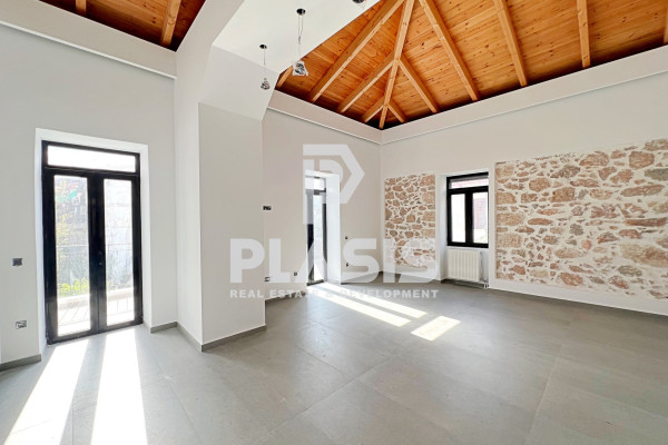 Apartment For Sale, floor: 1st, in the area: Nea Filadelfia. The area of the property is 120 sq.m. It consists of: 3 bedrooms, 2 bathrooms, 1 kitchen, 1 living room, while it has 2 parking spaces (2 in open space). It was built in 1930 and renovated in 2024. The heating of the property is Individual with Natural gas, while a Boiler, Radiator is also available, it has Aluminum frames, Thermal switches with Double - Energy glazing, energy certificate: D and the floors are: Tiles. Its condition is: Renovated, Amazing, located near Transportation, Park, School, Square, Church, Kindergarten, People's Market, Super Market, Shopping Center, City Center, Entertainment Centers, Market, Catering, has view Green, Openness, Good, Unobstructed. The property is Painted, Penthouse, Front, Bright, Airy, Free Everywhere, Traditional House, Stone and also has the following features and advantages: Screens, Storage, Garden, Security Door, Alarm, Night Power, Trees, Pets Allowed, Quiet Neighborhood, Energy Independent, Terrace, Drainage. No elevator with amazing wooden ceiling and individual gas boiler. Price: €400,000. Plasis Real Estate Syntagma, Contact Phone: 2103224225, email: