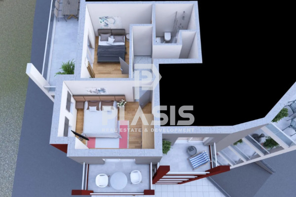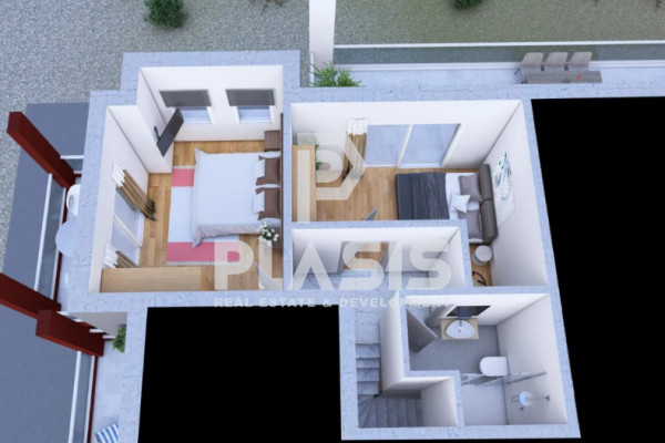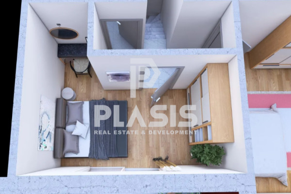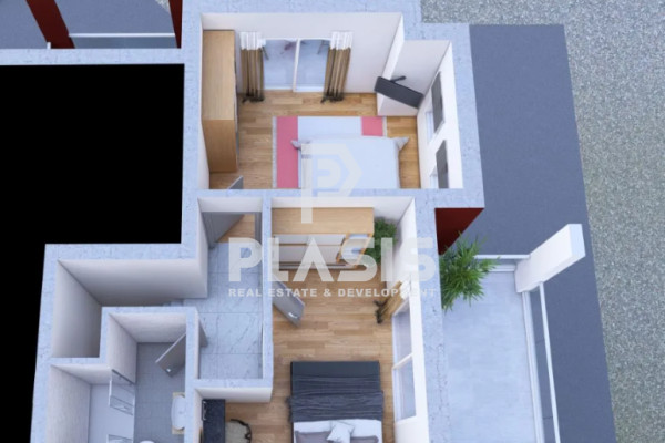 Maisonette For sale, floor: 5th, 6th (2 Levels), in Evosmos - Nea Politia. The Maisonette is 90 sq.m.. It consists of: 2 bedrooms, 2 bathrooms, 1 kitchens, 1 living rooms and it also has 1 parkings (1 Open). The property was built in 2025. Its heating is Autonomous with Natural gas, it has Synthetic frames with Double glazed - Energy Efficient windows, the energy certificate is: A and its floors are Tiles, Laminate. The property's status is: Under construction, it is close to Metro, Transportation, Park, Super Market, Local market, it has Openness, Good, Panoramic view and it has Southeast orientation. The Maisonette is Painted, Penthouse, With Facade, Bright, Airy, Ramp / Wheelchair access, Luxury, it is suitable for Investment and it also has the following unique features and advantages: Window Screens, Elevator, Storage, Internal staircase, Security door, CCTV, Quiet neighborhood, Fiber line, Porch, Drains. Price: €206,000. Plasis Real Estate Glyfada, contact phone: 2109601909, email: