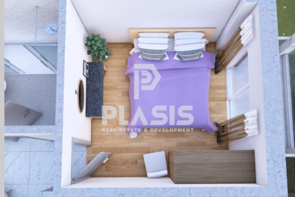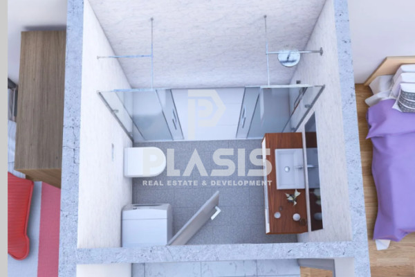 Apartment For sale, floor: 1st, in Evosmos - Nea Politia. The Apartment is 78 sq.m.. It consists of: 2 bedrooms, 1 bathrooms, 1 kitchens, 1 living rooms and it also has 1 parkings (1 Open). The property was built in 2025. Its heating is Autonomous with Natural gas, it has Synthetic frames with Double glazed - Energy Efficient windows, the energy certificate is: A and its floors are Tiles, Laminate. The property's status is: Under construction, it is close to Metro, Transportation, Park, Super Market, Local market, it has Openness, Good, Panoramic view and it has Southeast orientation. The Apartment is Painted, With Facade, Bright, Ramp / Wheelchair access, Luxury, it is suitable for Investment and it also has the following unique features and advantages: Window Screens, Elevator, Storage, Security door, CCTV, Quiet neighborhood, Fiber line, Porch, Drains. Price: €170,800. Plasis Real Estate Glyfada, contact phone: 2109601909, email: