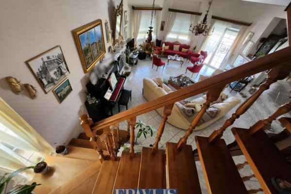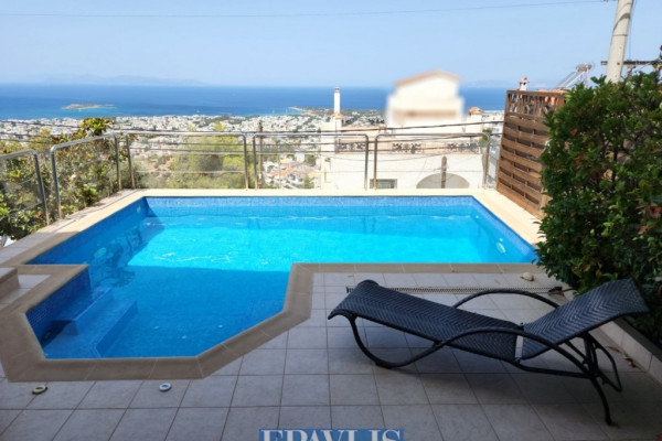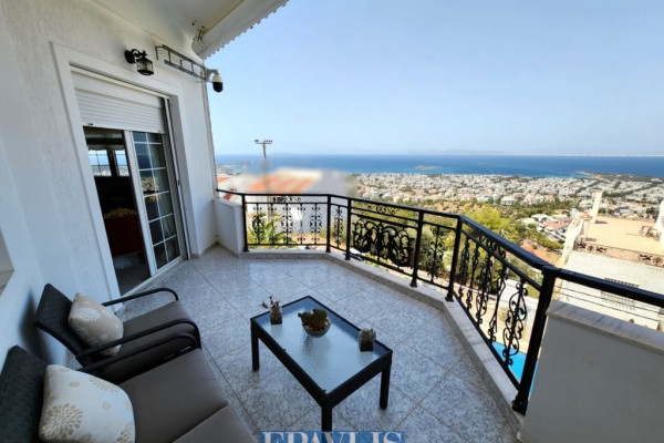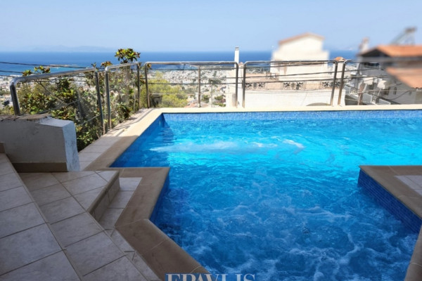 Voula-Panorama, Detached house 430sqm, 3 bedrooms (1 master), (2) bathrooms. In the Entrance there is a small swimming pool, with contra swimming mechanism/jacuzzi, (2) living room, guest house, reception hall, with stairs or elevator, living-dining room on two levels: the living room with the imposing white marble fireplace, perimeter windows and verandas. On the same level are an office space and a (service) room, a bathroom. Also the kitchen with exit-access to the side yard of the house. House (independent) 68 sq m, with bedroom, kitchen-living room and bathroom, oil autonomy, boiler, windows with double glazing-PVC and photovoltaics connected through DEDIE, from which it covers all its electricity needs and has income, as if it were rented on an annual basis! In a privileged location with a stunning, unobstructed, panoramic sea view Quality construction 1995 architectural element reminiscent of island mansions. from Piraeus, Elliniko, Glyfada, Voula, southwest orientation. At the same time, an efficient investment! Price: €2,650,0000. EPAVLIS REAL ESTATE AGENTS, Tel. Contact: 2109945719, email: