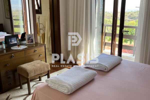 Villa For sale, floor: Ground floor, 1st, 2nd (3 Levels), in Thermaikos - Peraia. The Villa is 450 sq.m. and it is located on a plot of 8,000 sq.m.. It consists of: 5 bedrooms, 5 bathrooms, 2 kitchens, 2 living rooms. The property was built in 1984. Its heating is Central with Oil, Air conditioning are also available with Double glazed windows, the energy certificate is: B and its floors are Marble. The property's status is: Excellent condition, it has Sea, Nature, Openness, Good, Panoramic view. The Villa is Furnished, With Facade, Bright, Airy, Luxury and it also has the following unique features and advantages: Window Screens, Tents, Electric Appliances, Storage, Attic, Internal staircase, Swimming pool, Garden, Security door, Security alarm, Playroom, Satellite Receiver, Automatic watering, Grass, Trees, Pets allowed, Quiet neighborhood, Water Bore, Porch, Internal yard, Gym. Price: €1,400,000. Plasis Real Estate Glyfada, contact phone: 2109601909, email: