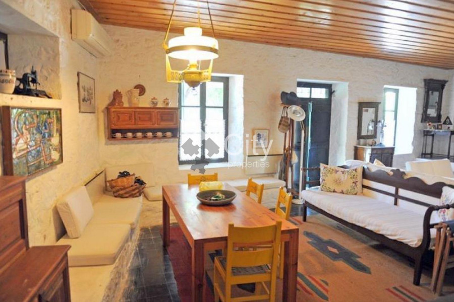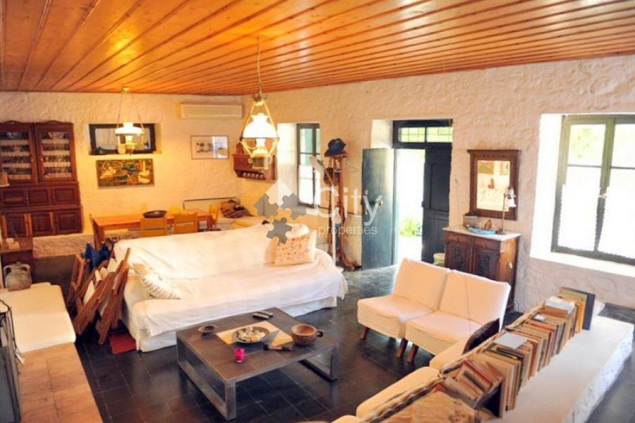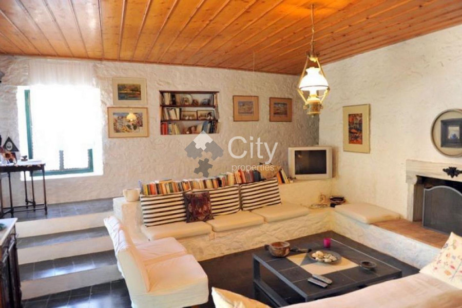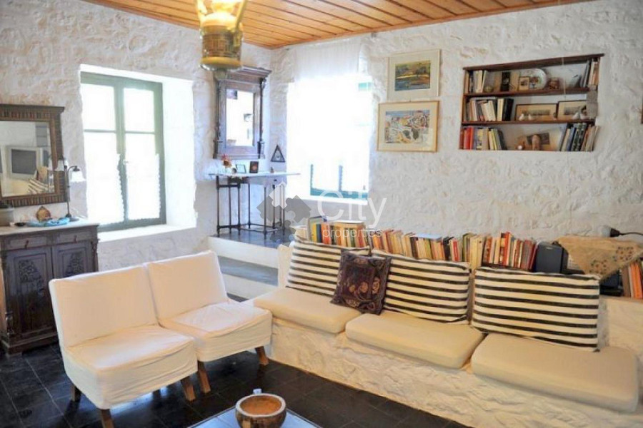 The house is located in the settlement of Hydra, on the most famous street of the island and at a distance of 7-8 minutes on foot from the port. Its total area is 162 sq.m., which is divided into 2 levels, while it extends on a plot of 266.93 sq.m. It was built in 1974 and completely renovated in 2010. It is all made of 50 cm thick stone. Its roof is wooden with tiles and insulated from rainwater, heat and cold with modern materials. On the first level of an area of 84 sq.m. the living room, the dining room and the kitchen are located. In the living room there are two armchairs and two sofas, where two people can sleep comfortably. It should be noted that one of the two sofas is an old Hydraic sofa, at least 80 years old, as there are other fairly old pieces of furniture of historical value. Also, there are sitting rooms built so that more people can sit around the fireplace, in which someone can sleep (mainly children). In the living room and in front of the kitchen there is a large table where 10 people can comfortably sit down to eat. In front of the living room there is a 40 m2 terrace, surrounded by flower beds, a lemon tree, a tangerine tree, a carob tree and two bougainvillea climbing to the upper floor terrace. On the second level, which is connected by an internal staircase, there are 3 bedrooms with a large single terrace of 56 sq.m. roofed with tiles in a small part and the rest covered with pergola and reeds. The first bedroom has a double bed, its own bathroom with a large shower with a seat completely renovated and a large new wardrobe with many drawers, shelves and space for hanging clothes. The second bedroom has two single beds, while the third has a single bed and can be used as an office. At the end of the first floor hallway there is a new large wardrobe and a second fully renovated bathroom with marble sink, basin and a modern Miele washing machine. The bedroom level is heated and cooled by a central air conditioning unit, while the living room level is heated by radiators and cooled by a modern split unit. At the back of the house is a garden of 108 m2, which has 4 lemon trees, a grapefruit tree, an almond tree and a gazia. Access to the garden is either outside the house, or inside through a door on the left at the end of the internal staircase. The code of the property is 11729. For more information, visit www.cityproperties.gr.