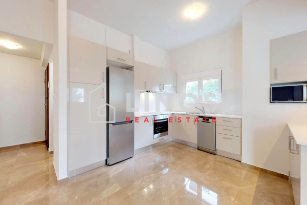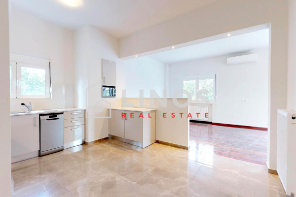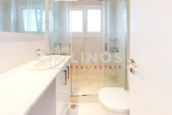 In an amazing spot, in Kato Glyfada, is this beautiful and particularly bright apartment with a total area of 92 sq.m. It is located on the 1st floor and has a comfortable and large living room, a fully equipped kitchen with modern electrical appliances, three spacious bedrooms, two of which have their own bathroom, an additional bathroom and a storage room. The parquet floors and the predominance of white give it warmth and tranquility. It has autonomous heating with natural gas, air conditioning, boiler, aluminum frames with double energy glazing, security door and other amenities. The building was built in 1975. This beautifully renovated apartment is a very good choice of permanent residence or smart investment opportunity as its location is ideal for high yield. LINOS REAL ESTATE, Contact Phone: 2109633010, email: