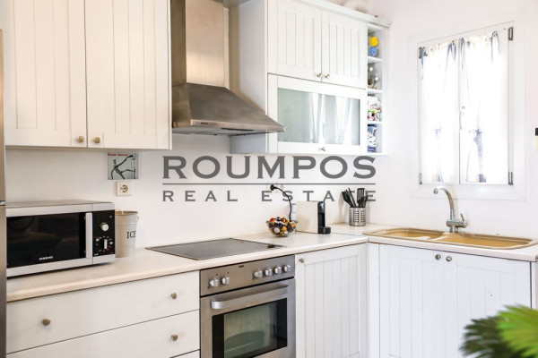 Inside, the maisonette exudes style and warmth. The living room is bright and airy, with traditional white tones and tasteful details that add character. The fully equipped kitchen offers all modern conveniences and blends seamlessly with the open-plan layout.