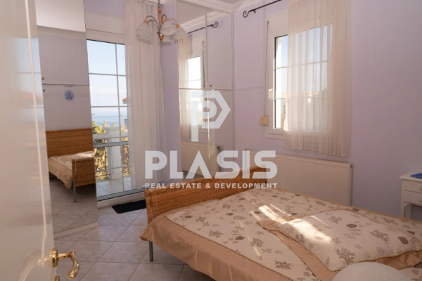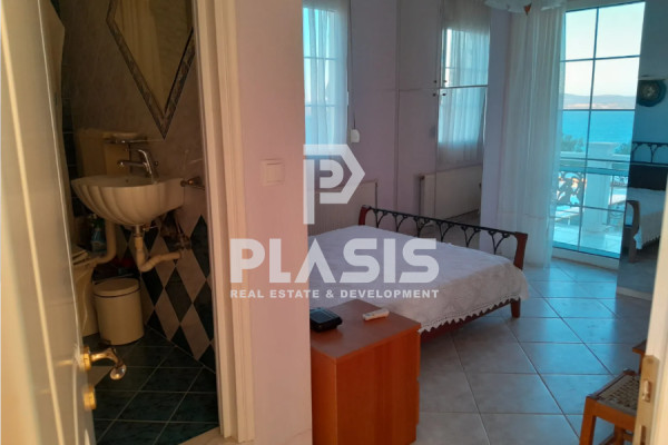 Σε προνομιακή τοποθεσία, επί κορυφογραμμής καταπράσινου λόφου και σε απόσταση μόλις 150 μέτρων από την ακτογραμμή, προσφέρεται προς πώληση πολυτελής μονοκατοικία συνολικής επιφάνειας 288 τ.μ., εντός οικοπέδου 2.357 τ.μ.