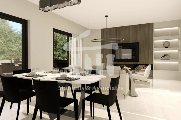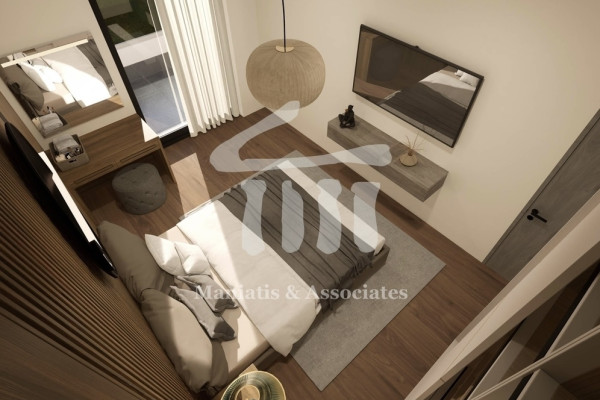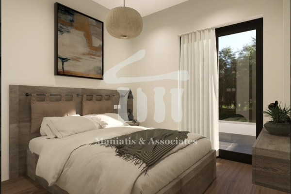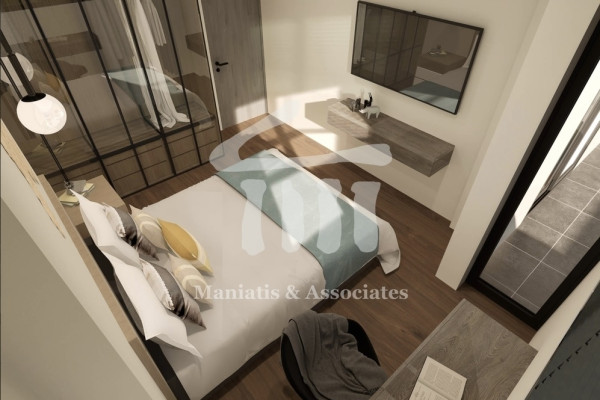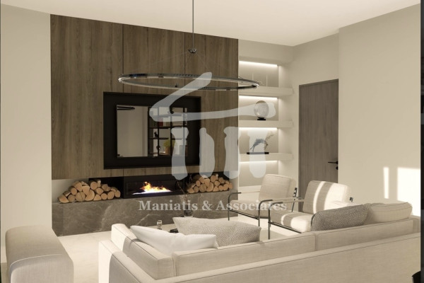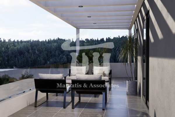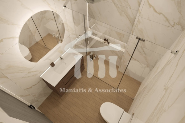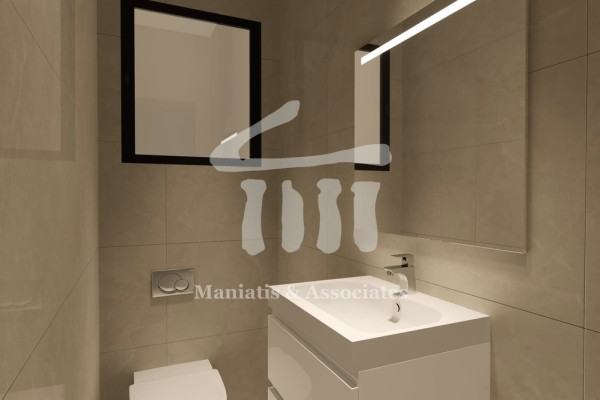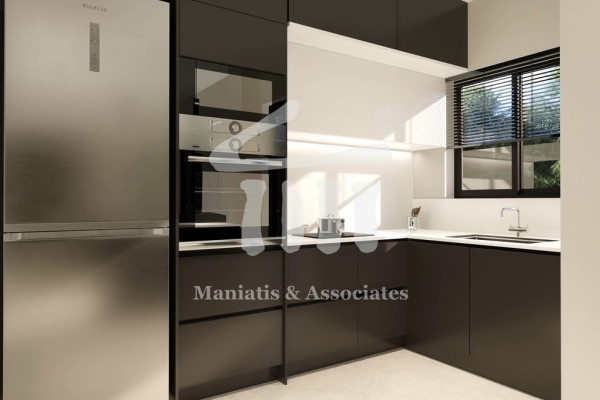 For sale: a duplex apartment on the 7th floor in the Ampelokipi – Pentagon area, with a total area of 129 sq.m. The property consists of 3 bedrooms, 1 bathroom, 1 WC, and a living room, and includes one open-air parking space. Built in 2023, it is a newly constructed property currently under completion, featuring autonomous natural gas heating, air conditioning, and a solar water system. It has aluminum window frames with double glazing and an energy certificate of category B+. The apartment is street-facing, bright, and cross-ventilated, offering urban views and accessibility for people with disabilities, with a luxurious design. Additional features include screens, awnings, elevator, storage room, security door, intercom, and alarm system. Located near schools, it provides comfort and practicality for family living or investment. Sale price: €600,000. For more information: Maniatis & Associates, phone +30 2104190703, email: