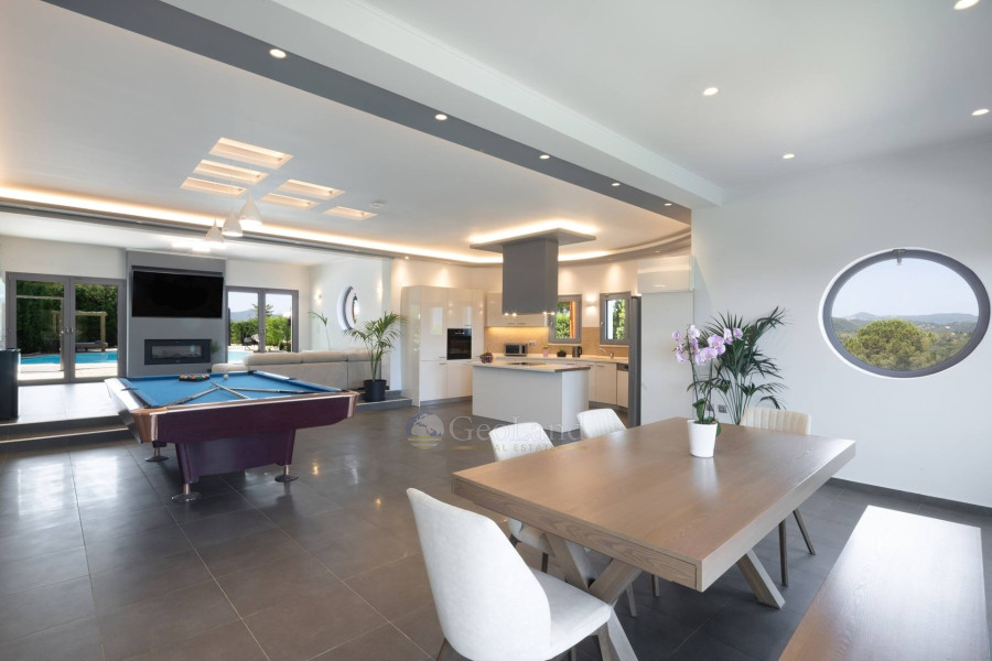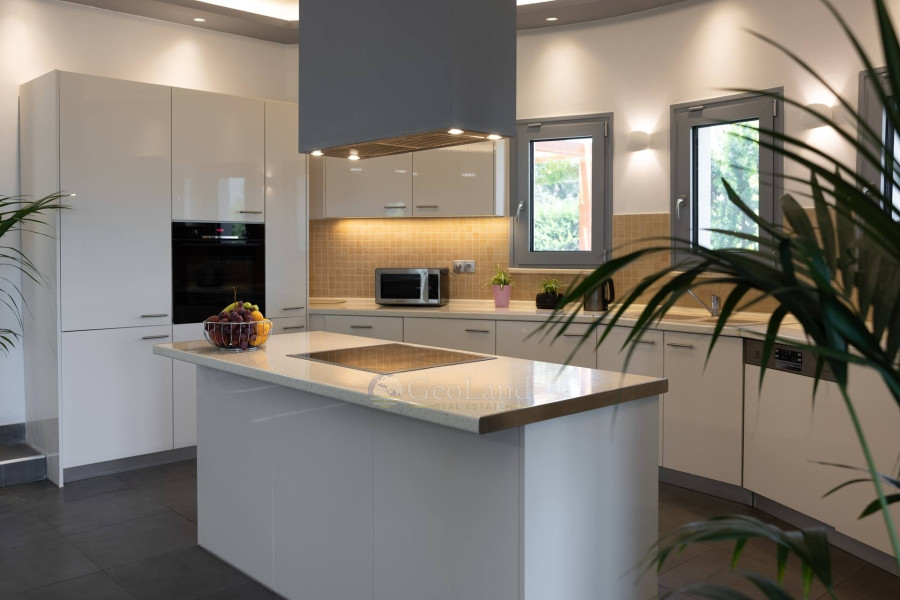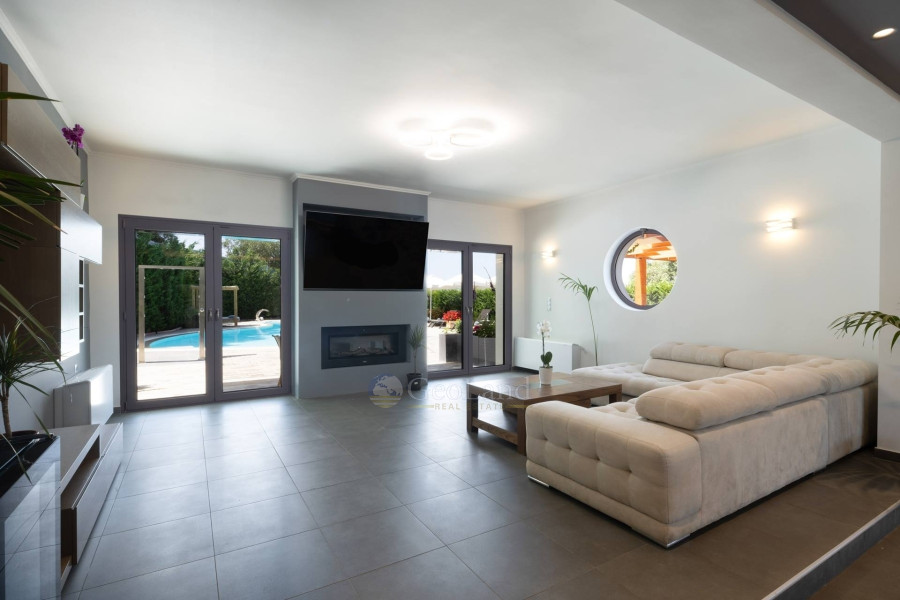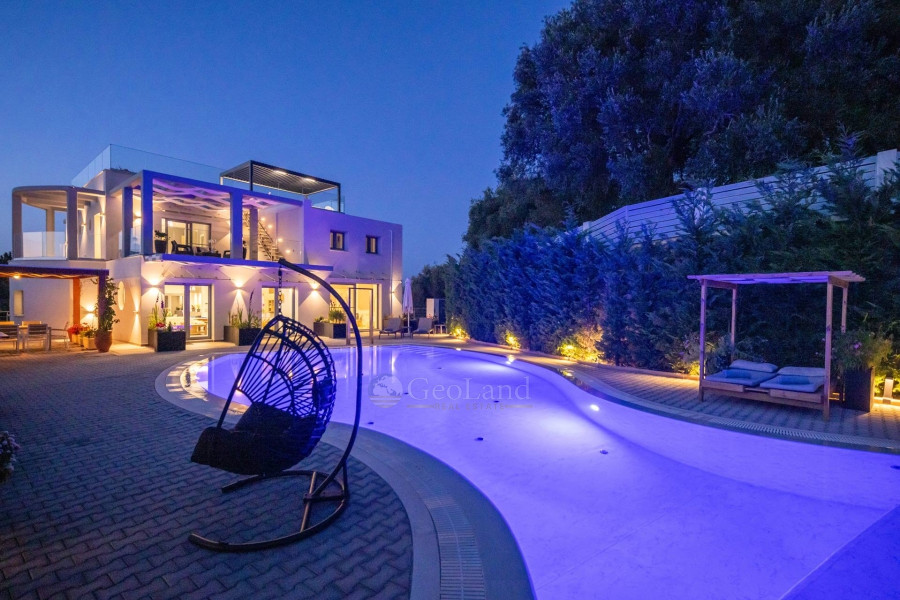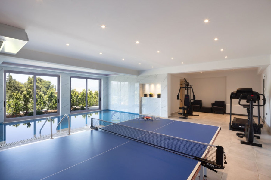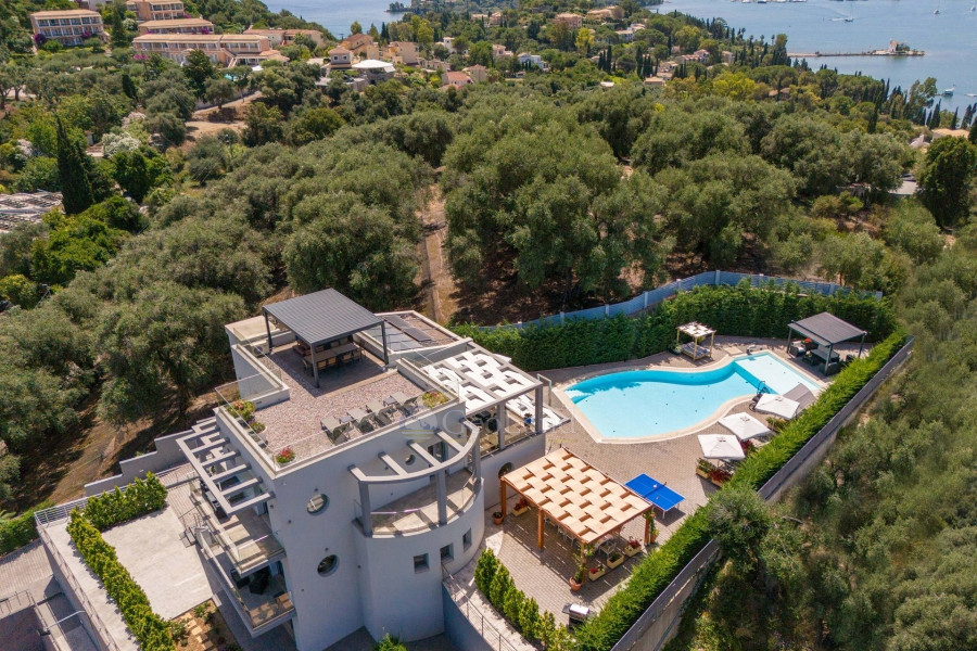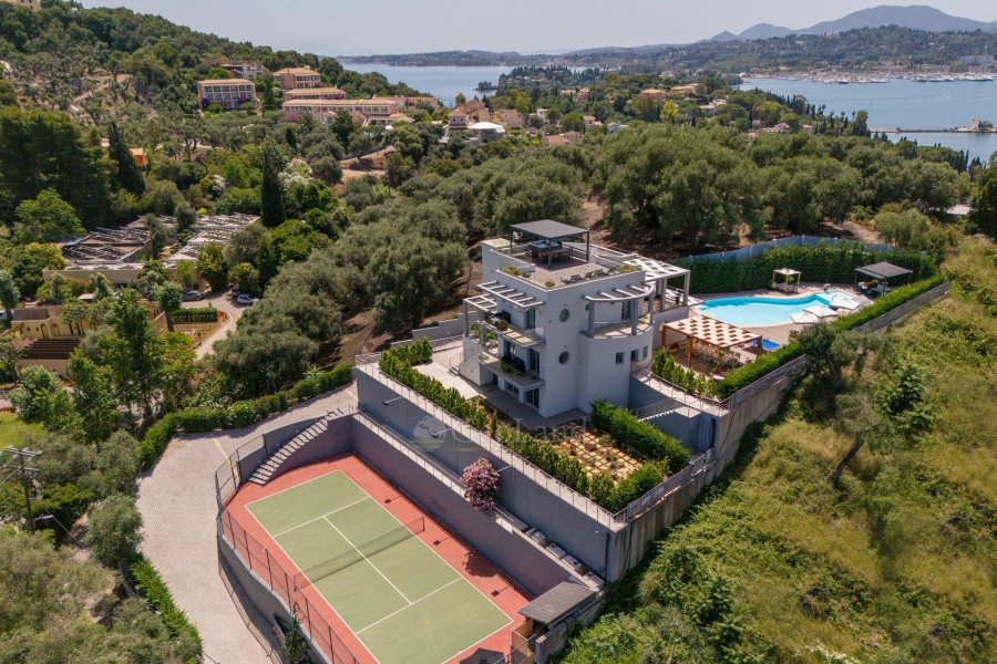 Property Code: 6741 - Villa FOR SALE in Corfu Corfu town for € 2.900.000 . This 500 sq. m. Villa is on the Ground floor and features 5 Bedrooms, 3 Livingrooms, Kitchen, 5 bathrooms and 2 WC. The property also boasts Heating system: Fan coil, tiled floor, view of the Sea, Window frames: Aluminium, Armourplated door, elevator, parking, a storage unit sqm, garden, fireplace, jacuzzi, swimming pool, electric car charging facilities, A/C, alarm system, electrical appliances, insect screens, triple-glazed windows, solar-powered water heater, BBQ, roof Garden, playroom, dressing room, laundry room, intercom TV, open space, internal staircase. The building was constructed in 2021 Plot area: 2020 s.q. . Building Energy Rating: A+ Distance from sea 280 meters, Distance from the city center: 6000 meters, Distance from nearest village: 2500 meters, Distance from nearest airport: 7500 meters, On the east coast of Corfu, on the enchanting peninsula of Kommenos, there is an impressive, brand new luxury villa, built in July 2021, ready to offer unique moments of relaxation and luxury. This exceptional residence, with a total area of 500 square meters, is an ideal choice for both investment and private use. Available from GEOLAND REAL ESTATE. Imagine waking up in the absolute tranquility of one of the five spacious bedrooms, where understated luxury meets comfort. Each bedroom is designed as a private relaxation space, with its own elegant bathroom, offering the necessary privacy and comfort for each guest. The master bedroom is a true sanctuary, as it has its own private terrace, perfect for enjoying your morning coffee or a relaxing drink in the evening, admiring the stunning views. In addition, the spacious dressing room offers plenty of space for your personal care.As you descend to the ground floor, you will be greeted by an atmosphere of unique luxury. The indoor heated swimming pool is a real gem, offering the opportunity for refreshing dips regardless of the season. Next door, the fully equipped gym invites you to keep in shape with modern fitness equipment. The existence of a lift ensures easy access to all floors of the villa, making it accessible to all. The open-plan living area is designed to offer ultimate comfort and entertainment. The modern kitchen, equipped with top-of-the-range appliances, is a paradise for cooking enthusiasts, while the elegant dining area is ideal for enjoying meals with family or friends. The comfortable living room, with its cozy fireplace, invites moments of relaxation and tranquility. For moments of entertainment, the pool table offers endless hours of fun.Stepping out of the interiors, you will discover an outdoor paradise. The large outdoor swimming pool, with its wooden deck, comfortable sunbeds and elegant umbrellas, creates an idyllic setting to enjoy the sun and the coolness of the water, with an uninterrupted view of the Ionian Sea. The specially designed BBQ area is ideal for organizing unforgettable outdoor meals and evenings with friends and family. The lush and carefully maintained gardens offer a place of tranquility and beauty, while the spacious terraces are ideal for enjoying a coffee or a drink while gazing at the breathtaking scenery. In addition, the private tennis court offers the opportunity for sport and entertainment. Climbing up to the roof garden, you will discover another space of absolute enjoyment. The Jacuzzi located there offers a unique relaxation experience with a panoramic view of the surrounding area, creating unforgettable moments.The privileged location of the villa in Kommeno gives you the opportunity to explore the unique beauties of Corfu. Within walking distance you will find idyllic beaches with crystal clear waters, picturesque taverns where you can taste the local cuisine and luxurious restaurants for more refined dining experiences. In addition, the historic centre of Corfu, with its impressive Venetian buildings and narrow picturesque alleys, which has been recognized as a UNESCO World Heritage Site, is easily accessible for day trips. This villa is not just a holiday home, but a proposal for a luxurious lifestyle, offering all modern amenities and a unique aesthetic in one of the most beautiful parts of Corfu. It is an opportunity to create unforgettable memories in an environment of absolute tranquility and luxury. If you have already started to see yourself as the next proud owner of this unique villa, don't waste any more time. Book your appointment with GEOLAND with and let us take you to this amazing place and answer all your questions.