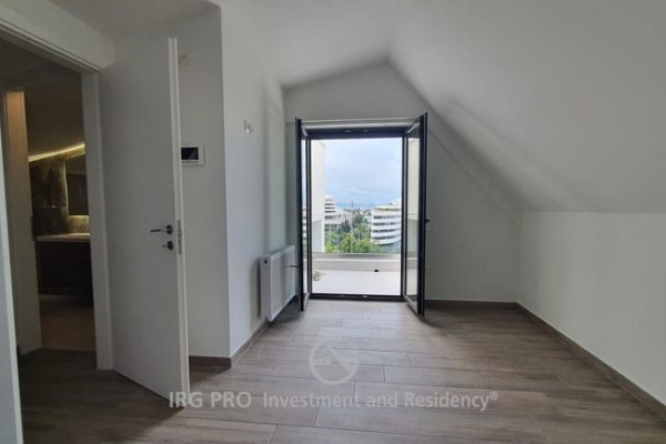 Kallithea, Stavros Niarchos Cultural Center, Maisonette, 118 sq.m., on plot 200 sq.m., floor: 6th, 2 level(s), 3 bedroom(s), 2 bathroom(s), 1 kitchen(s), 1 parking, view: Good, year of construction: 2022, property status: Under Construction, energy certificate: A+, heating: Personal - Natural Gas, floors: Wooden floors + Tiles, doors: Aluminum, features: Elevator, Security door, Security alarm, CCTV, Storage room, Attic, Internal Staircase, Double Glazed Windows, Balconies, Pets Allowed, Luxury, Airy, Roadside, Bright, Solar water system, New Construction. IRG PRO INVESTMENT & RESIDENCY, 59 SKOUFA Str. - KOLONAKI, TEL. 210 3639934, www.irgpro.com,