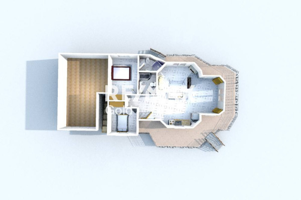 On the mezzanine there is a comfortable and bright living-dining room with an energy fireplace (possibility of creating an additional room), a large kitchen with a window, a hallway, a bathroom with a shower and two spacious bedrooms with built-in wardrobes. One bedroom has a private bathroom with a window. All rooms are bright, with access to a perimeter balcony with a pergola and a wonderful view of the garden and nature.