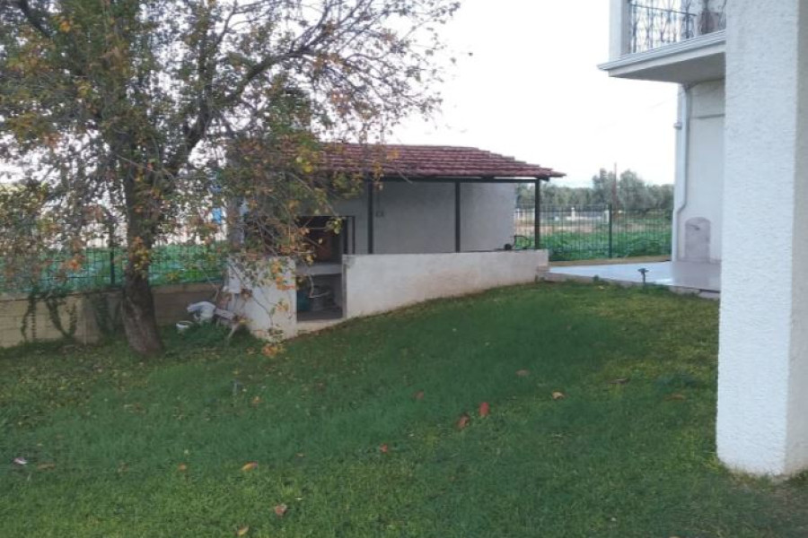 87 sqm, two bedrooms, bathroom, fireplace, next door, kitchen lounge together, heating pump heating heating and hot water 24 hours a day, garden 2 acres, BBQ, a parking lot, has no communal.