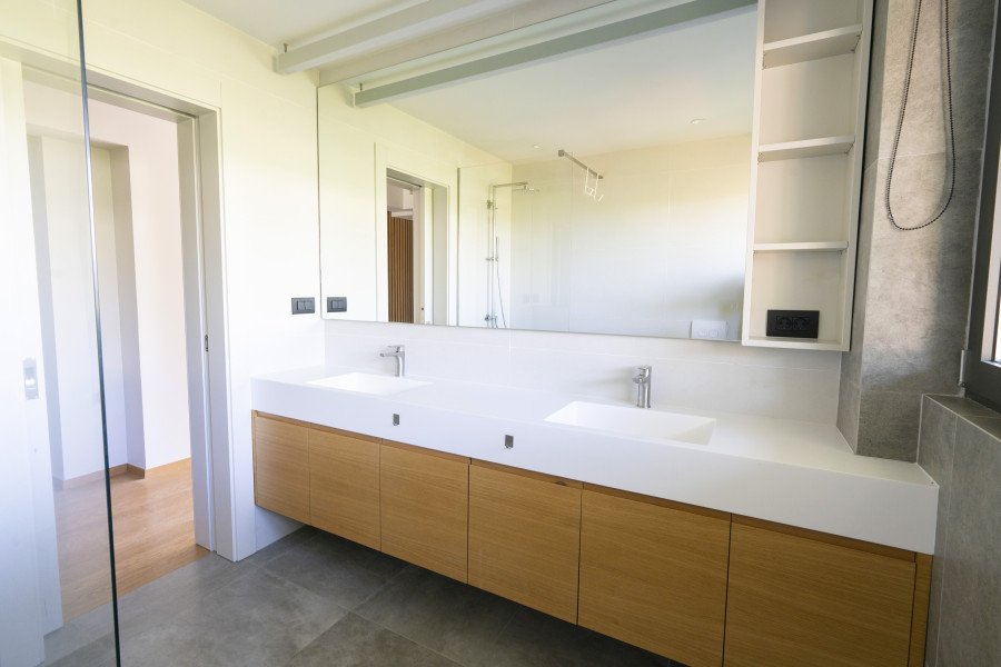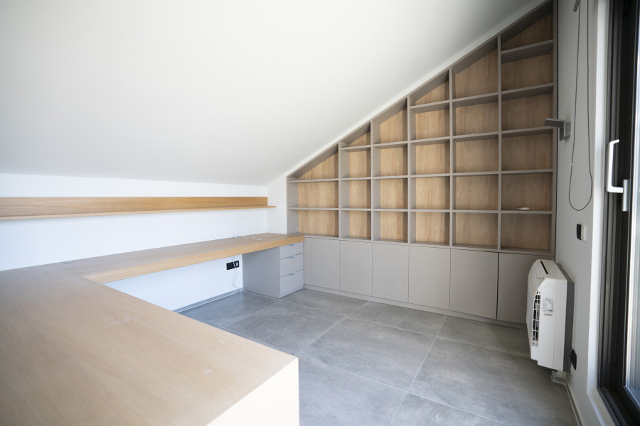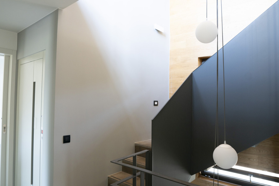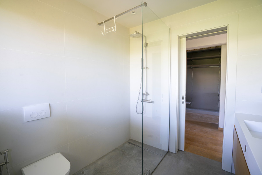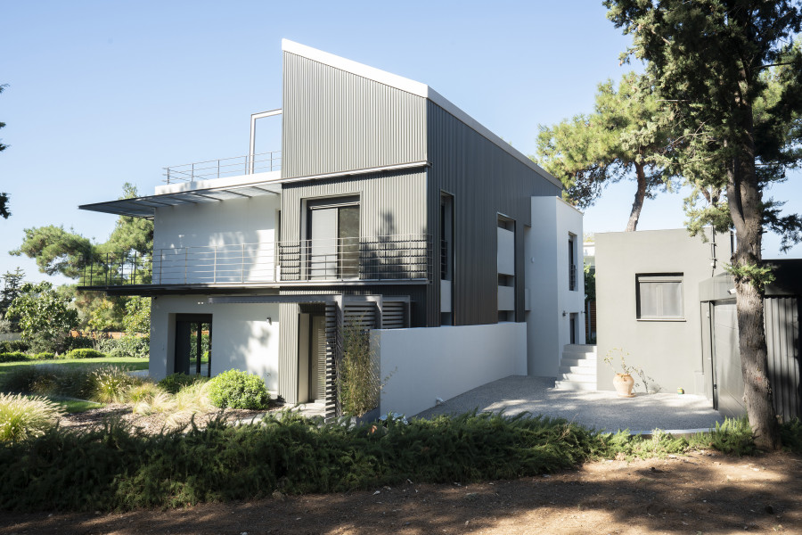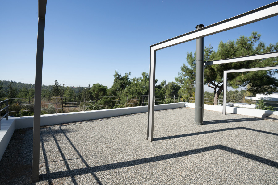 Newly built villa with clear architectural lines for sale in a great enviroment combining the tranquility of the suburbs and the proximity to all amenities and the city center Layout: Two floors and an attic with stair case and elevator Ground floor: big living room, kitchen, Wc 1st floor 3 rooms. 1Masterbedroom with walk in closet and bathroom, another bathroom and extra closet at the hall. Attic open space divided visually by the stair case into two separate spaces that can be used as playroom and/or office, leading to a spacious terrace ideal for creating a beautiful roof garden. Features: