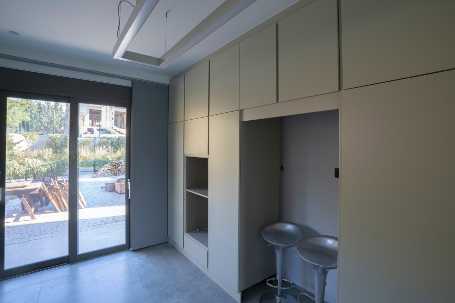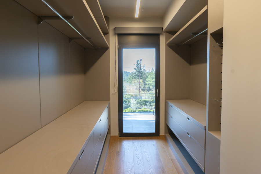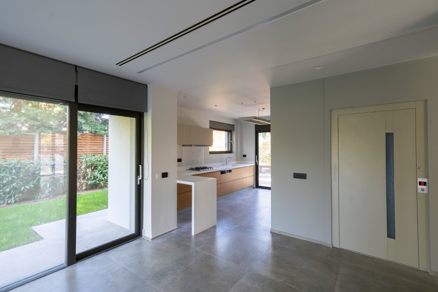 Fully insulated, triple glaze windows aluminum frames. Automated (smart) lights and aluminum window shutters. Heat/Cooling : Underfloor system with two separate systems supported each from a high efficiency heat pump, all channel built both systems operate via smart control Kitchen with gas installation stove & cooking rings Energy efficient fireplace Elevator New smart and remote control alarm linked to surveillance Hq for immediate response and cameras around the house. Lan installation throughout the whole house. Ups for electric appliances. Robot for garden moaning, automated springles throughout the garden. Wooden floors (rooms) Granite tiles throughout the rest of the house. Closed garage space Readymade garden landscape with Robot for garden moaning, automated springles. Seperate room for service insulated, smart operation, underfloor heating, tv.